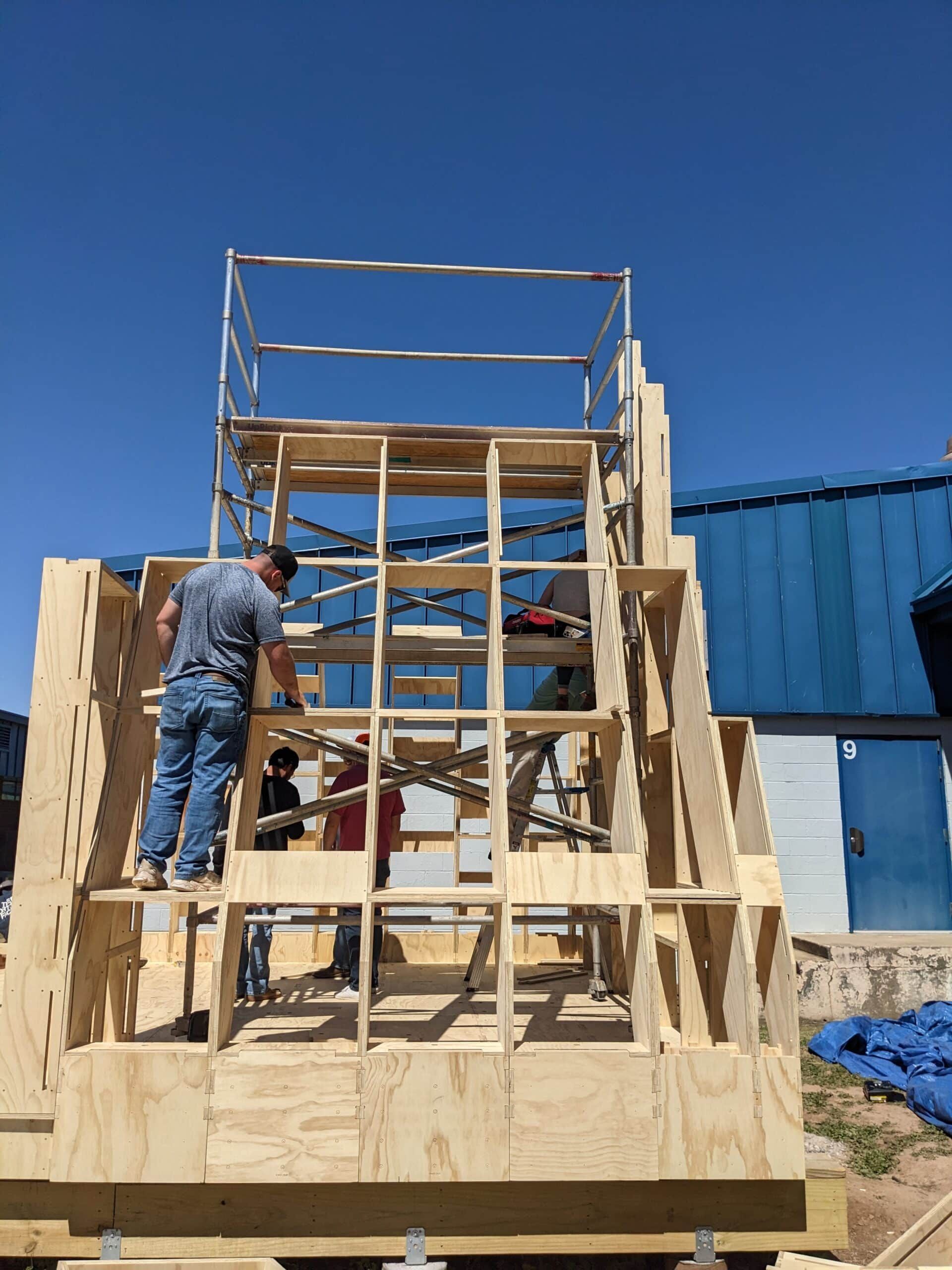 This grow lab doubles as a learning environment: the plywood structure is sturdy enough to support horticultural activity while maintaining clarity of construction logic. Its enveloping polycarbonate shell provides a controlled microclimate for year-round learning, allowing Crutcho students to engage directly with botany and agriculture through hands-on experimentation.