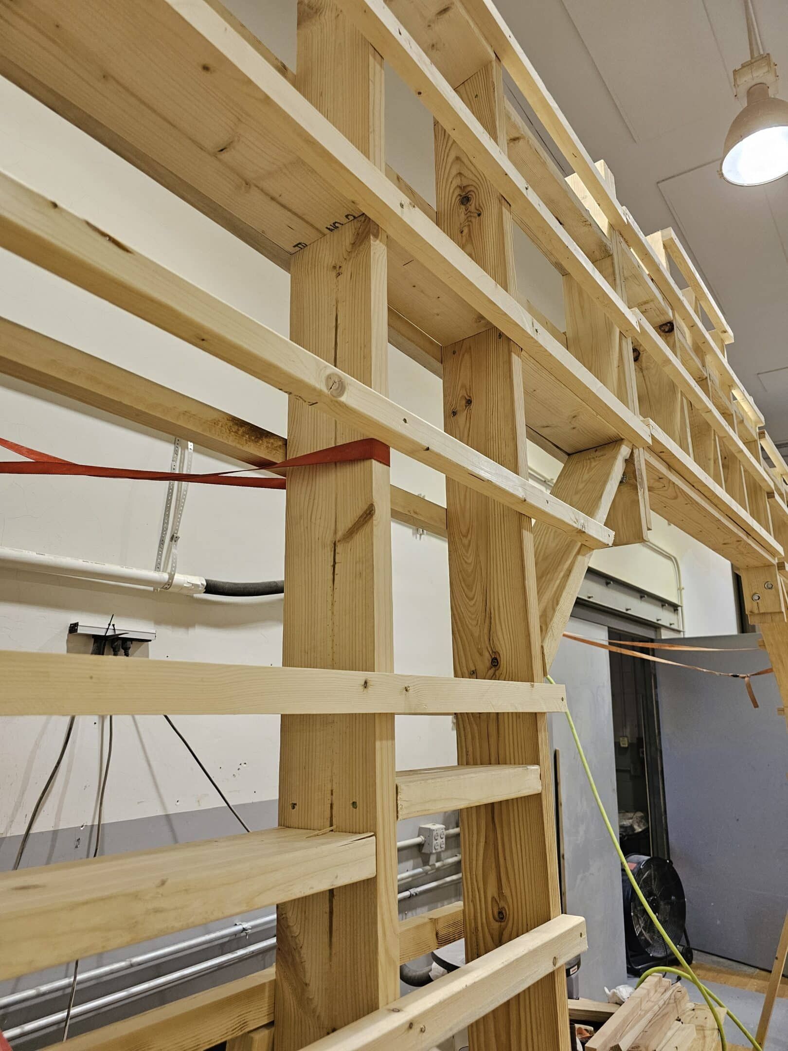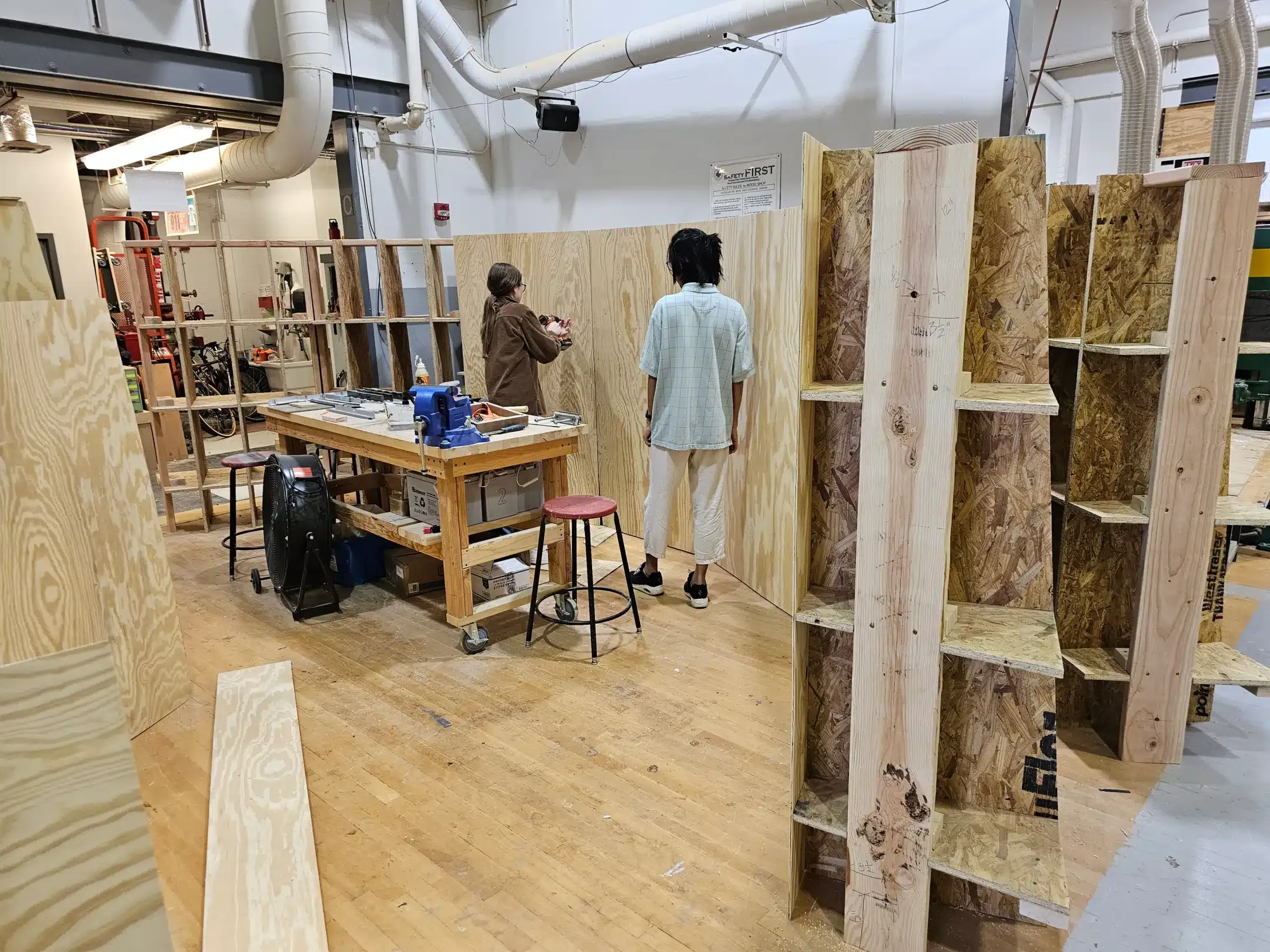 Each project blends strong design ideas, with hands-on skills to transform digital concepts into physical form, and practical decision-making about materials and how they’re used. Through iterative prototyping, rationalization of geometries, and careful resource management, students engaged with architectural making as both a technical process and a creative act. The resulting installations operate simultaneously as exhibition infrastructure, sculptural presence, and design research, blurring disciplinary boundaries between architecture, fabrication, and art.