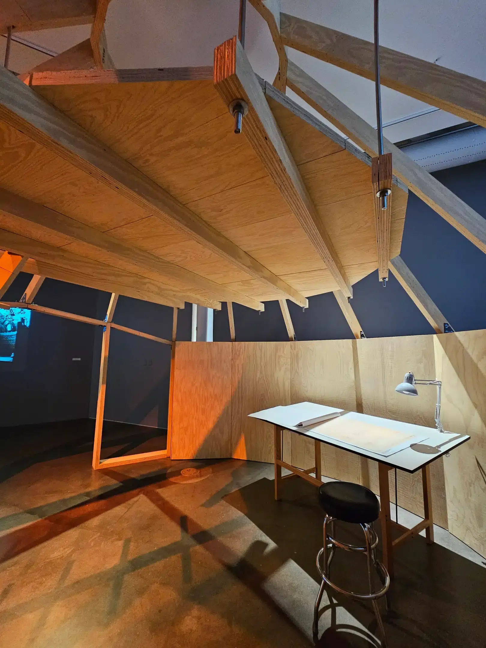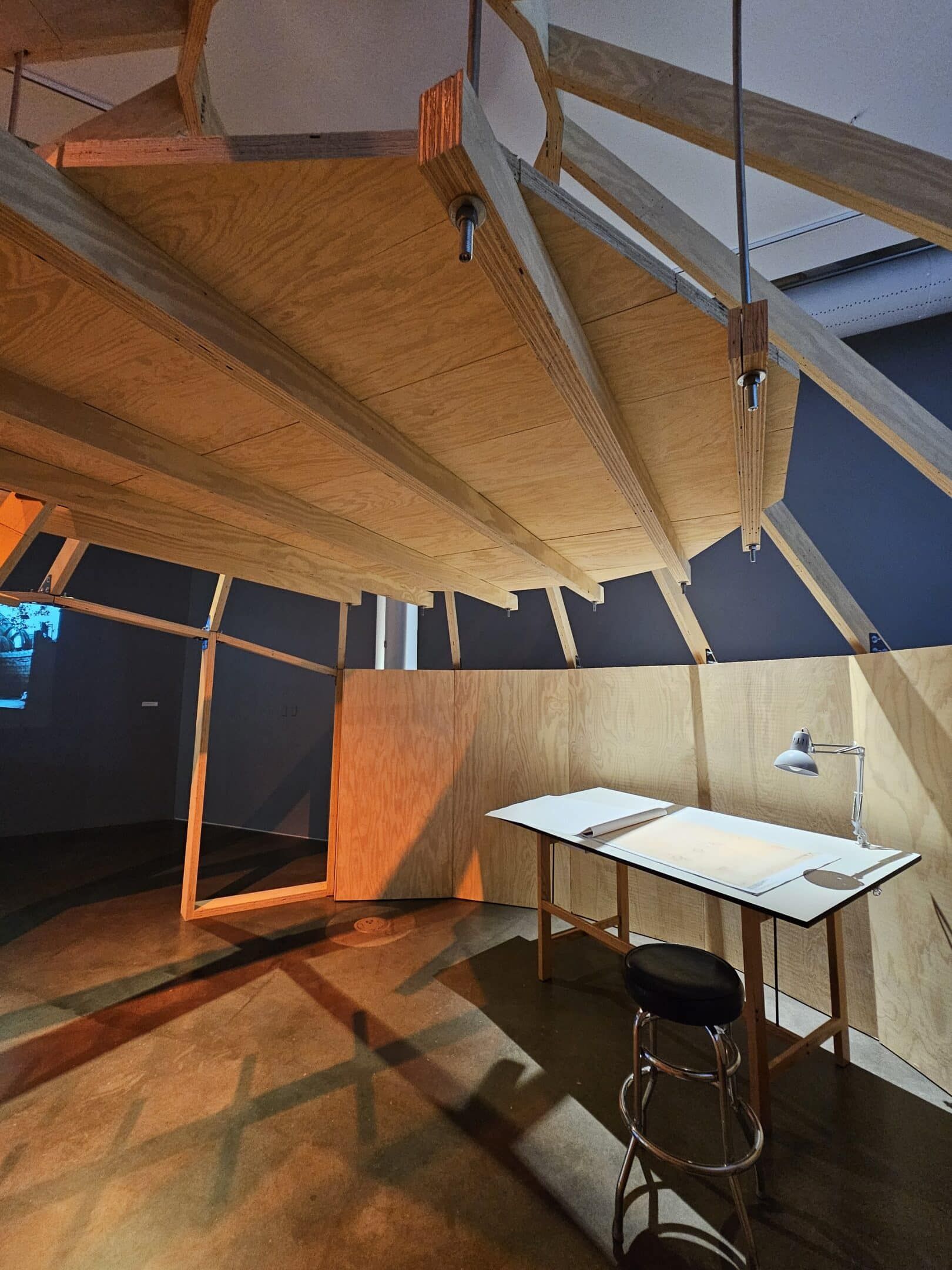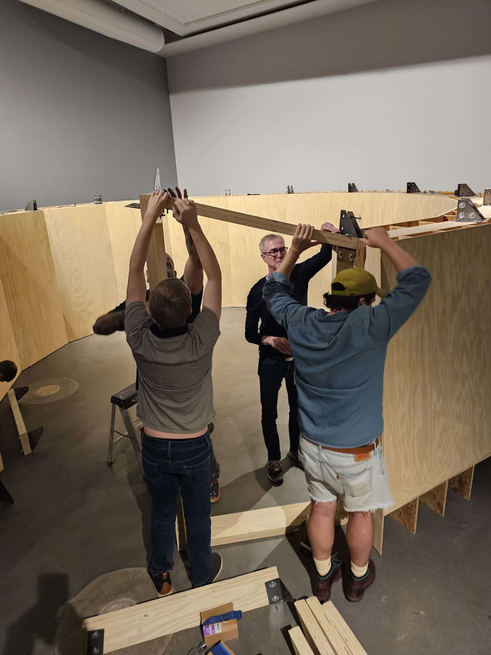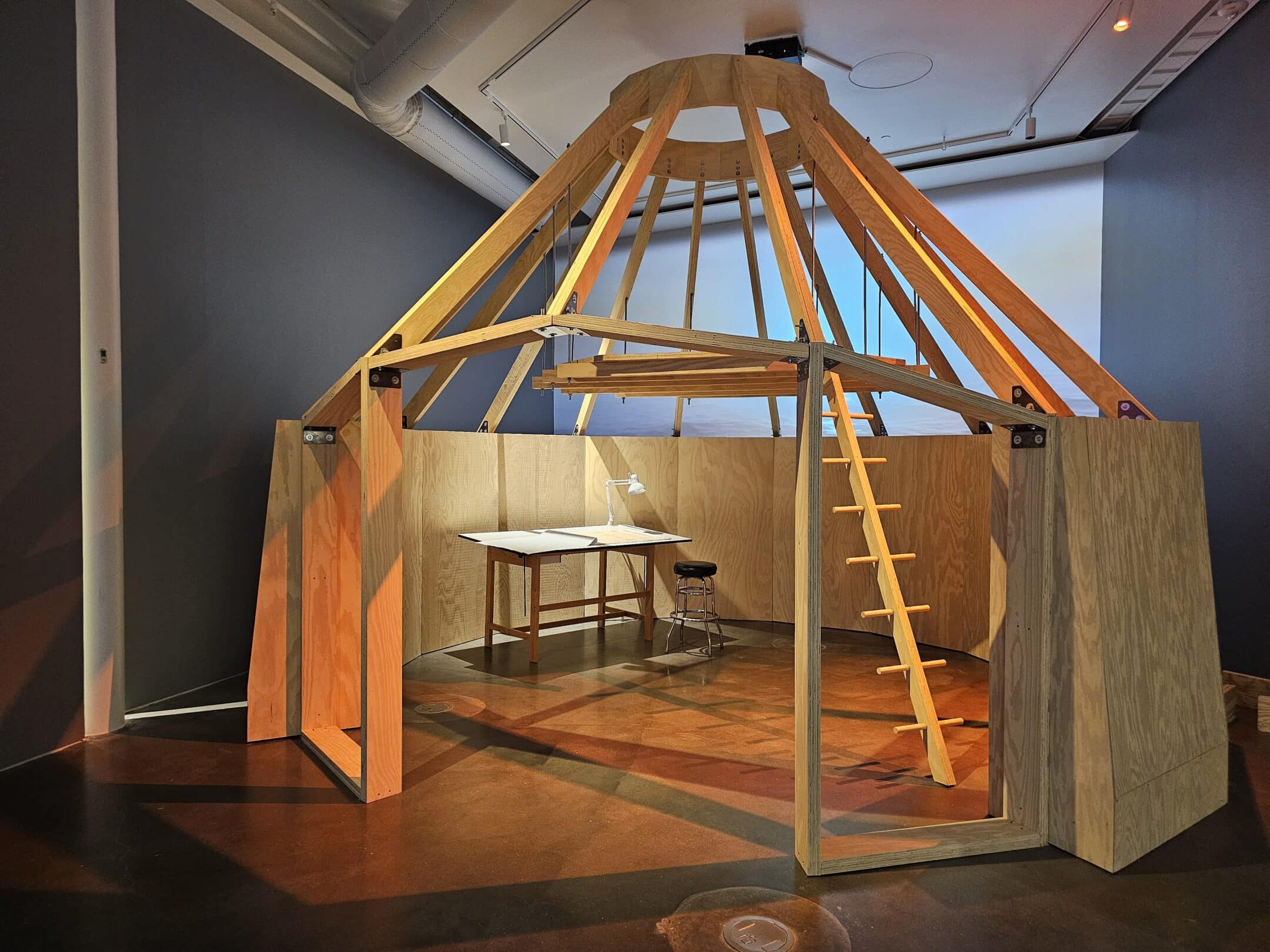 For Outré West, Design Build students developed three distinct architectural installations that re-envision, and re-create works by architects Mickey Muennig and Donald MacDonald which engaged directly with the curatorial vision of the exhibition. The work was produced within Gibbs Collective Creating, a year-long immersive design build seminar and multiple independent studies. Together, these efforts merged conceptual inquiry with advanced fabrication practice, aligning with the American School’s ethos of experimentation, regional responsiveness, and the inseparability of making and thinking.