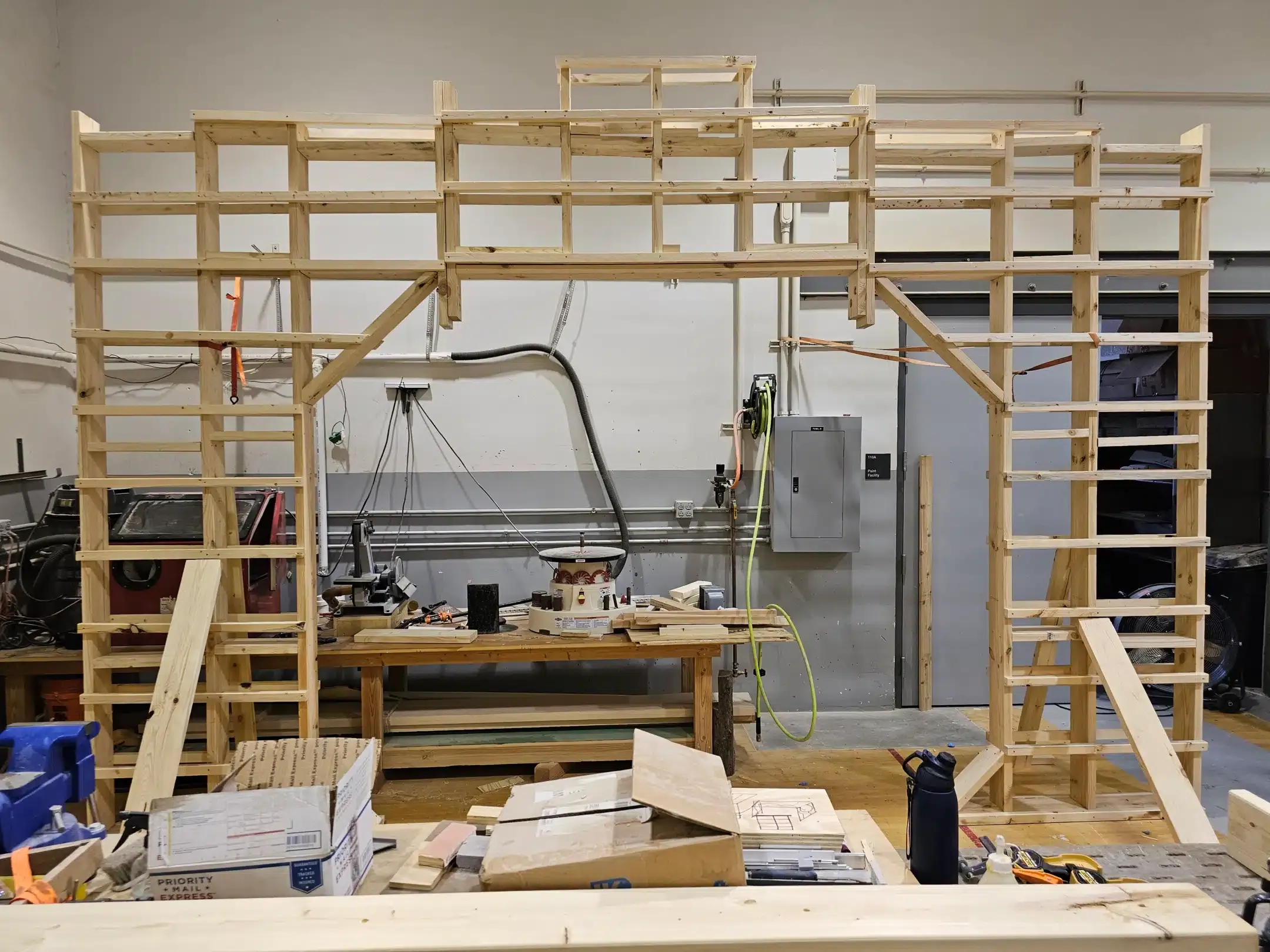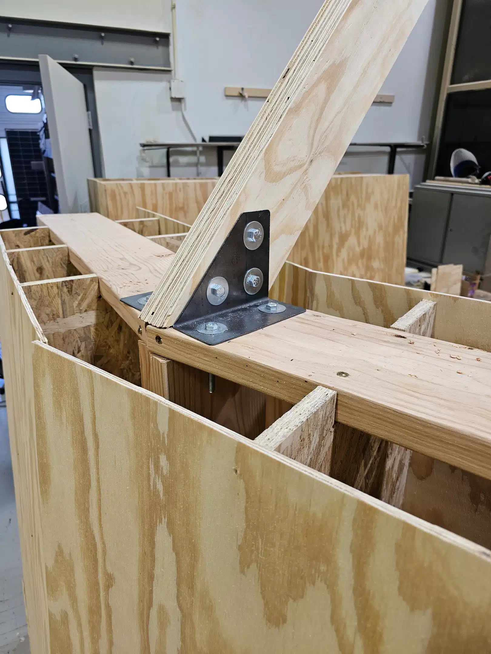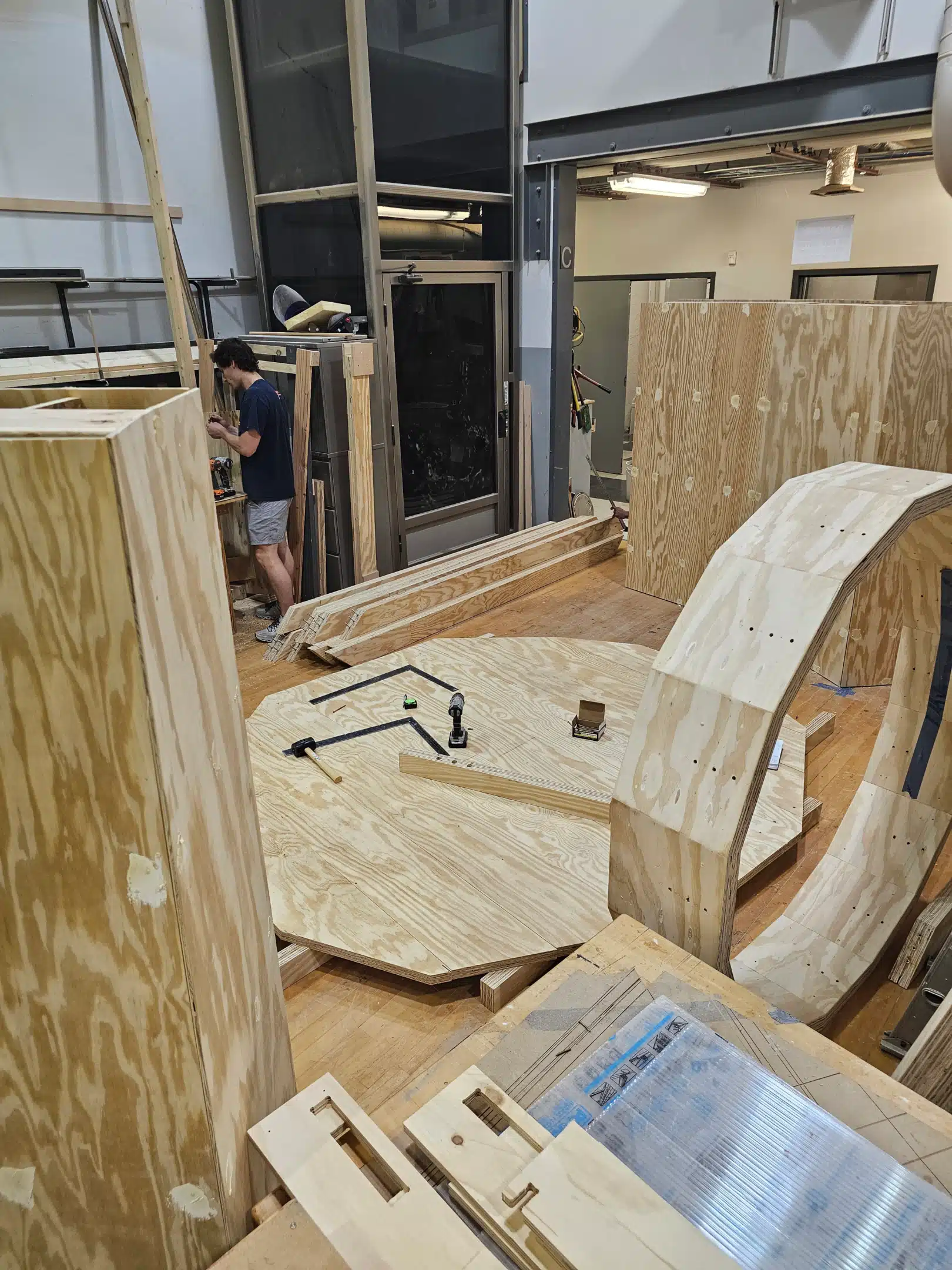 Across all three works, the seminar explored the transformation of monolithic, masonry, and timber precedents into planar material strategies. Designs were digitally modeled, unfolded, and milled from flat plywood sheets, with most joinery fabricated from custom plasma-cut steel components. This approach celebrated material economy, fabrication logic, and the artistry of reduction, minimizing complexity while amplifying precision and craft.