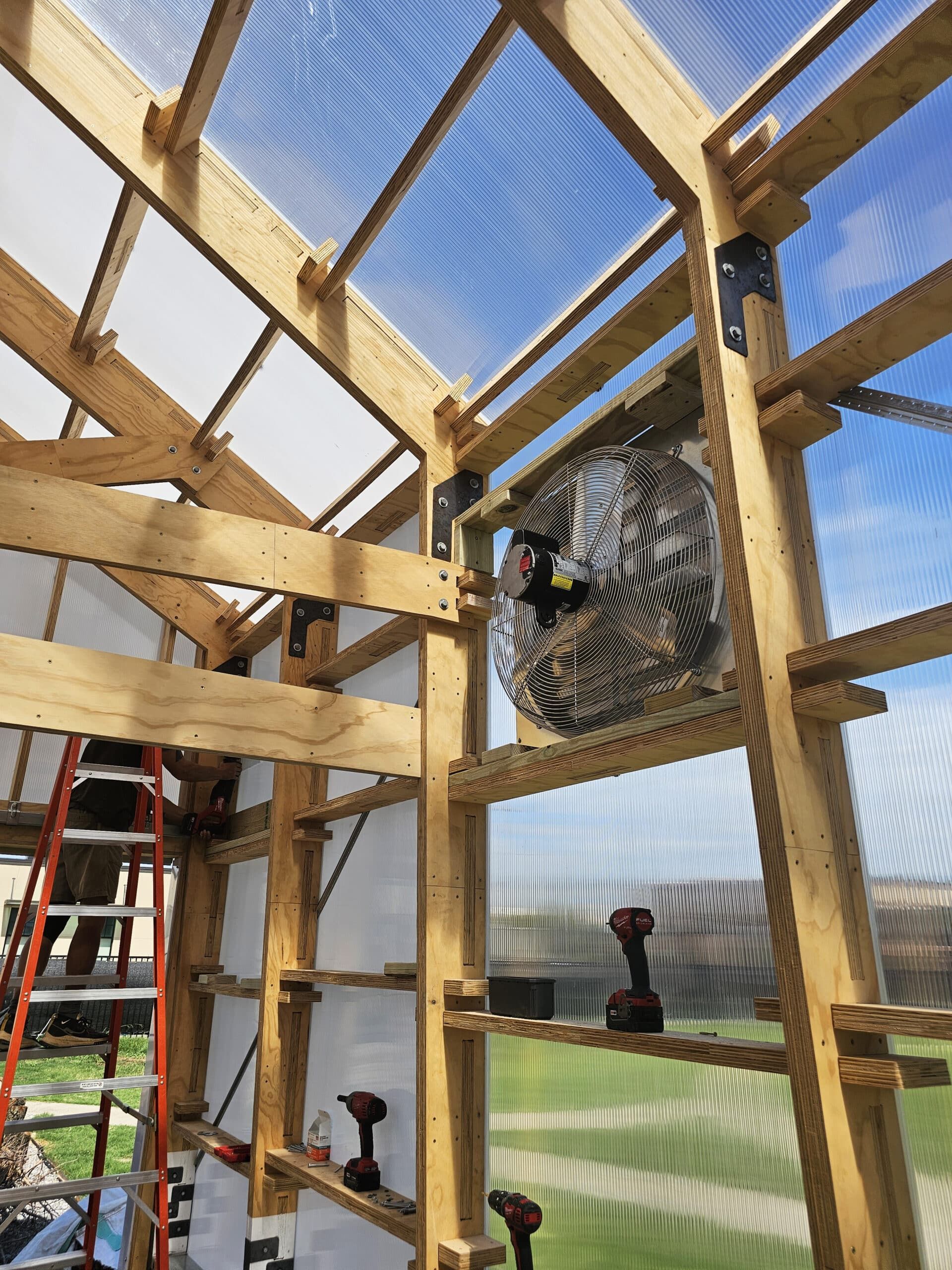 Students conducted a detailed site survey that analyzed topography, vegetation, soil, drainage, and sun patterns. This pre-design phase emphasized environmental responsiveness and systems thinking, ensuring the greenhouse would address urban farming needs, such as water management and passive solar strategies.