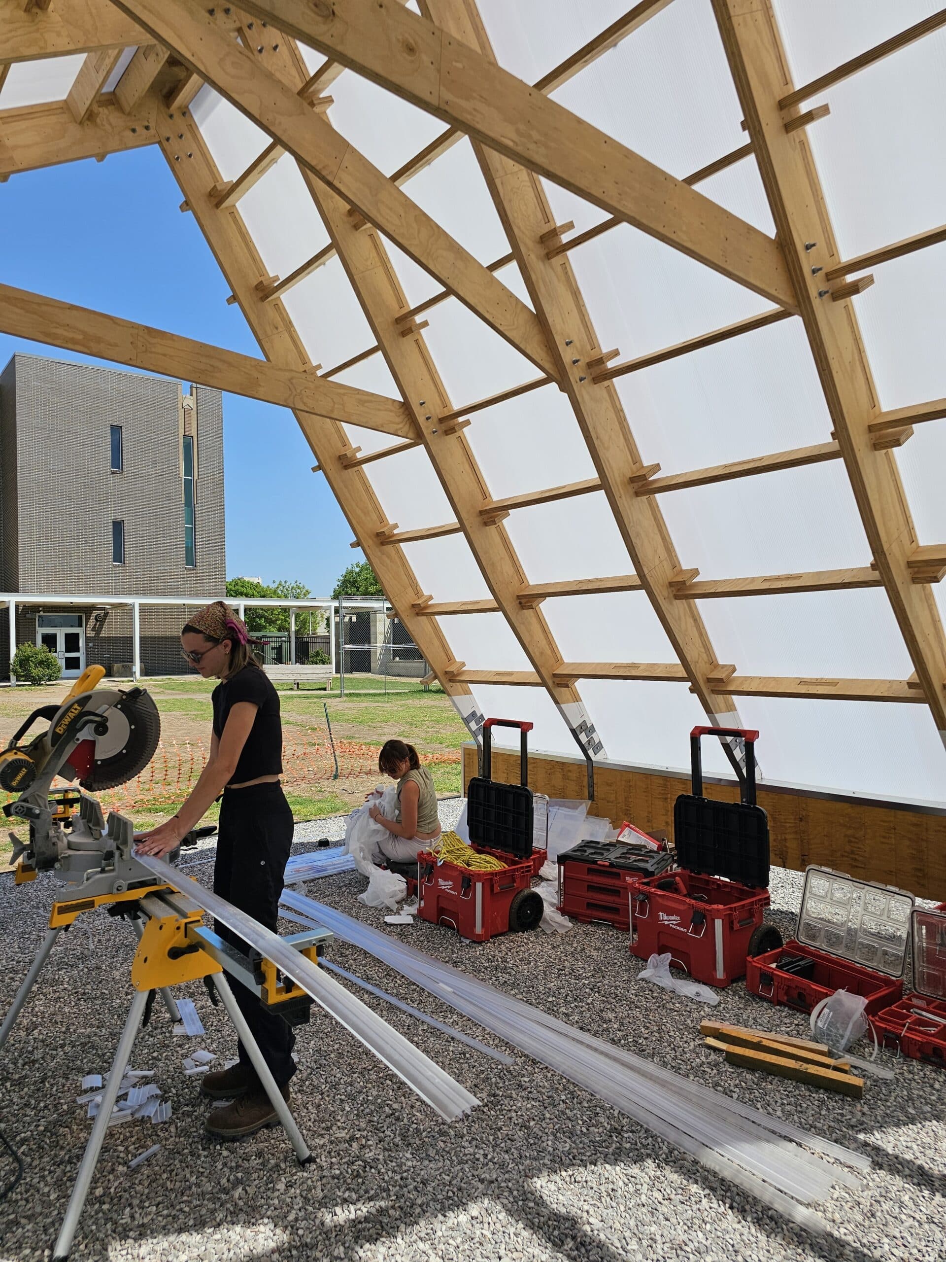 Students took on leadership roles in construction administration, managing tasks such as scheduling, budgeting, and contractor relationships. This active involvement ensured the project stayed within budget and on schedule, meeting school and community goals. The experience bridged classroom learning with site management, reinforcing the connection between design strategies and on-site construction.