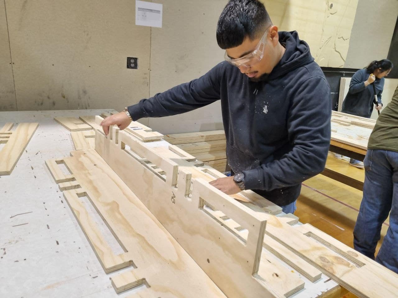 CNC milling and plasma cutting were used to produce modular plywood components and steel connections. By translating digital models into physical assemblies, students optimized material use and reduced waste, directly addressing sustainability goals. The iterative design process reinforced the curriculum by connecting digital methodologies with physical construction, ensuring students achieved measurable outcomes.