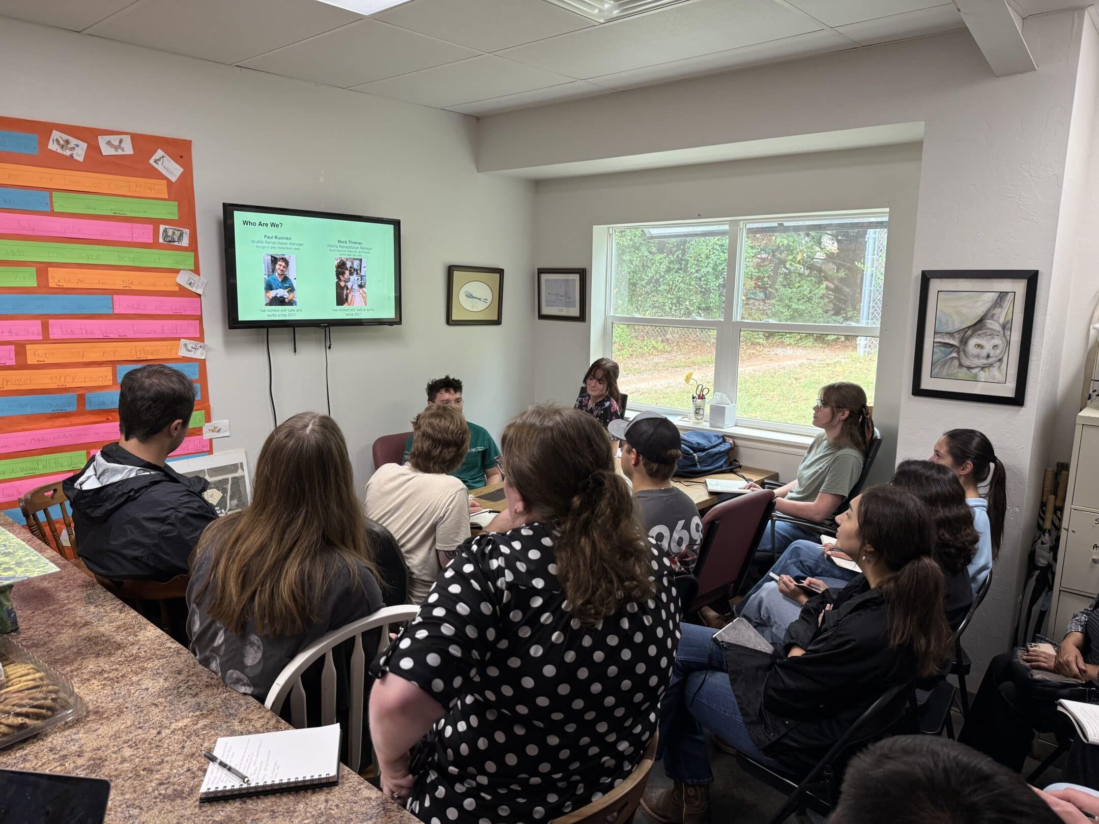 The tour highlighted the diversity of WildCare’s work. Students saw a wide range of species in recovery, including birds of prey, small mammals, reptiles, and songbirds. They also gained a deeper understanding of the needs of bats and chimney swifts, whose rehabilitation will be directly supported by this year’s project.