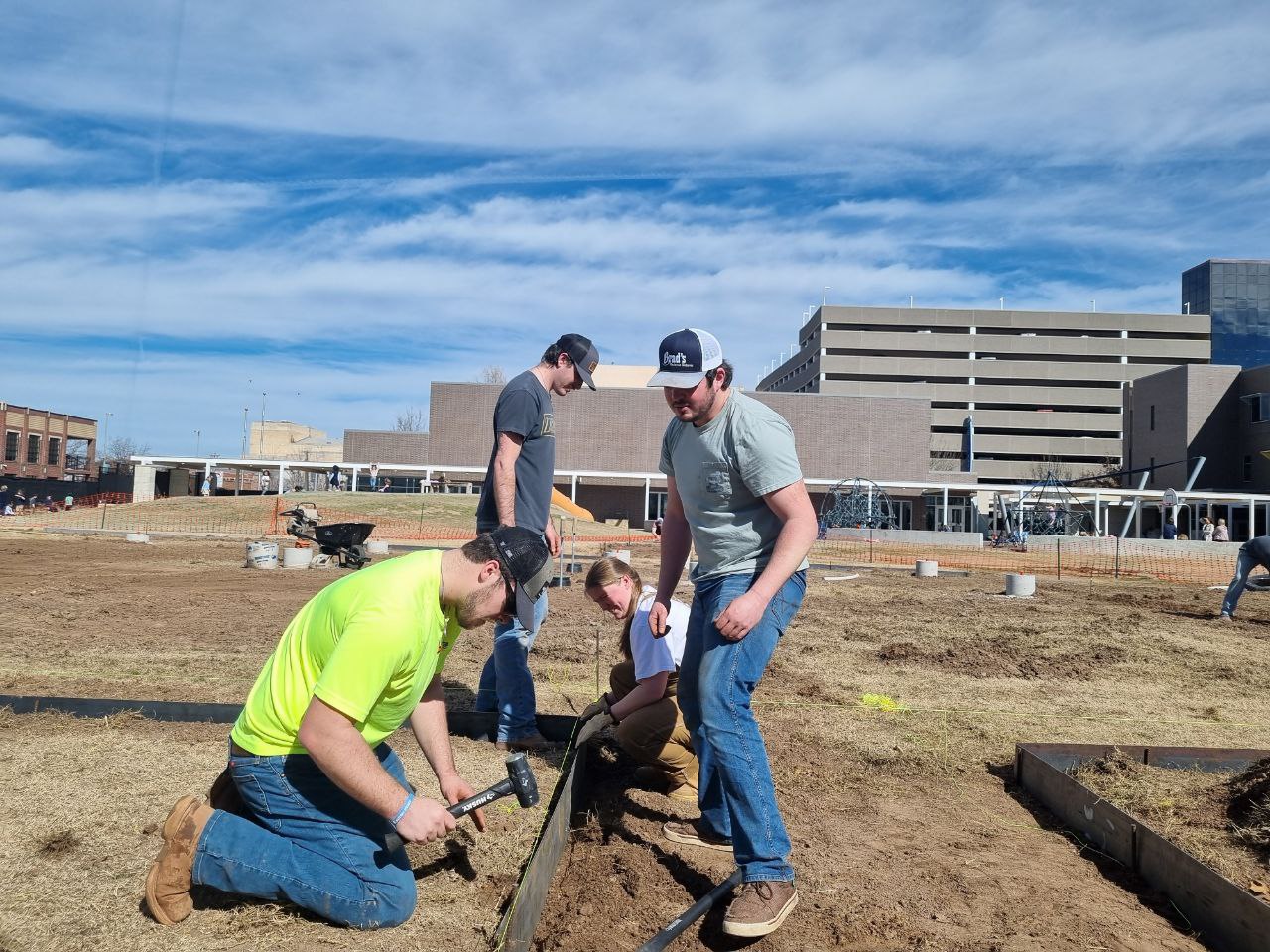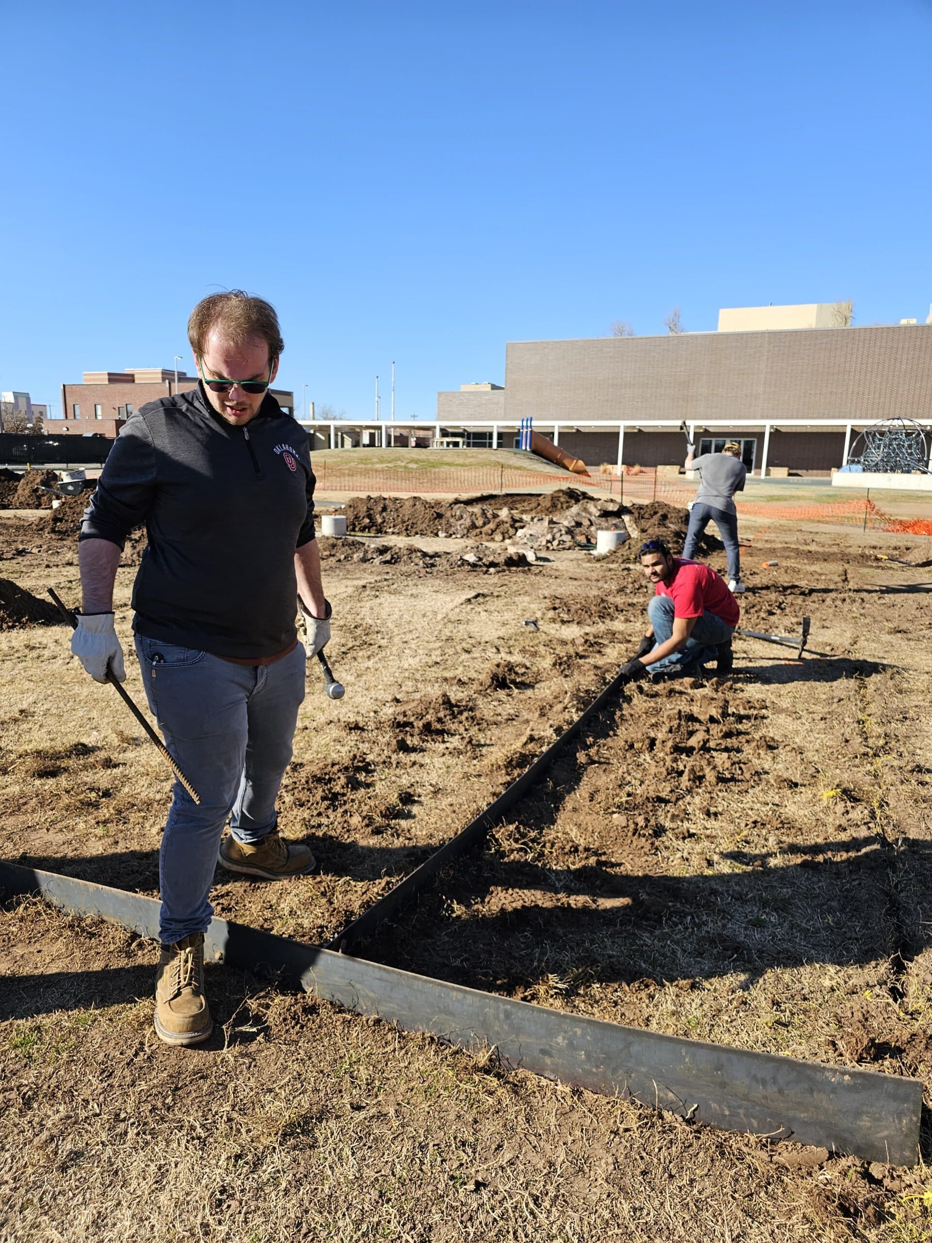 The installation of 1/8″ steel for edging purposes was chosen for its stength and endurance. As design+build students, we acknowledge that every element, no matter how seemingly minute, plays a pivotal role in shaping the narrative of space. The deliberate choice of this resilient material underscores our dedication to merging functionality with aesthetics, ensuring that our landscape interventions stand the test of time.