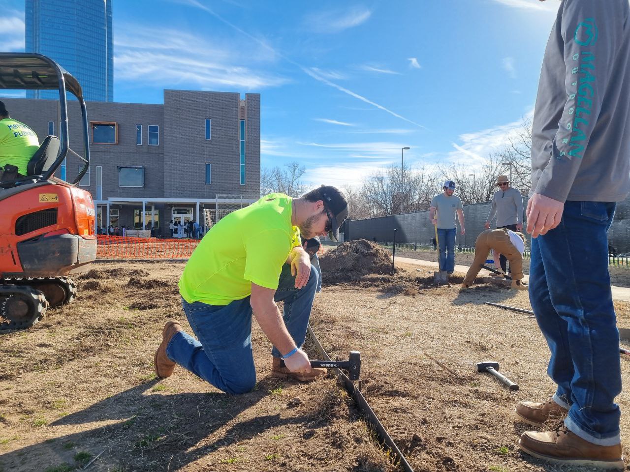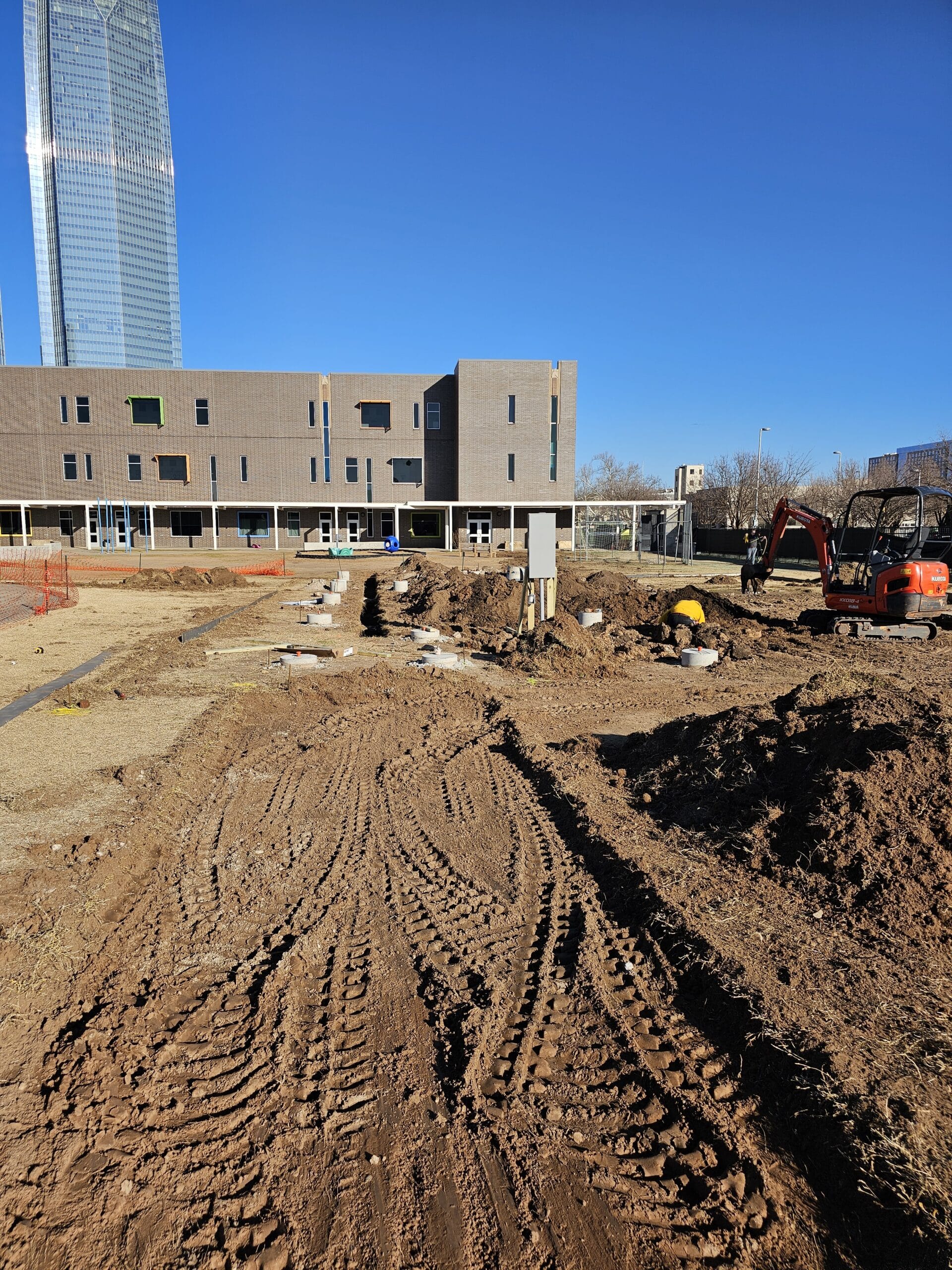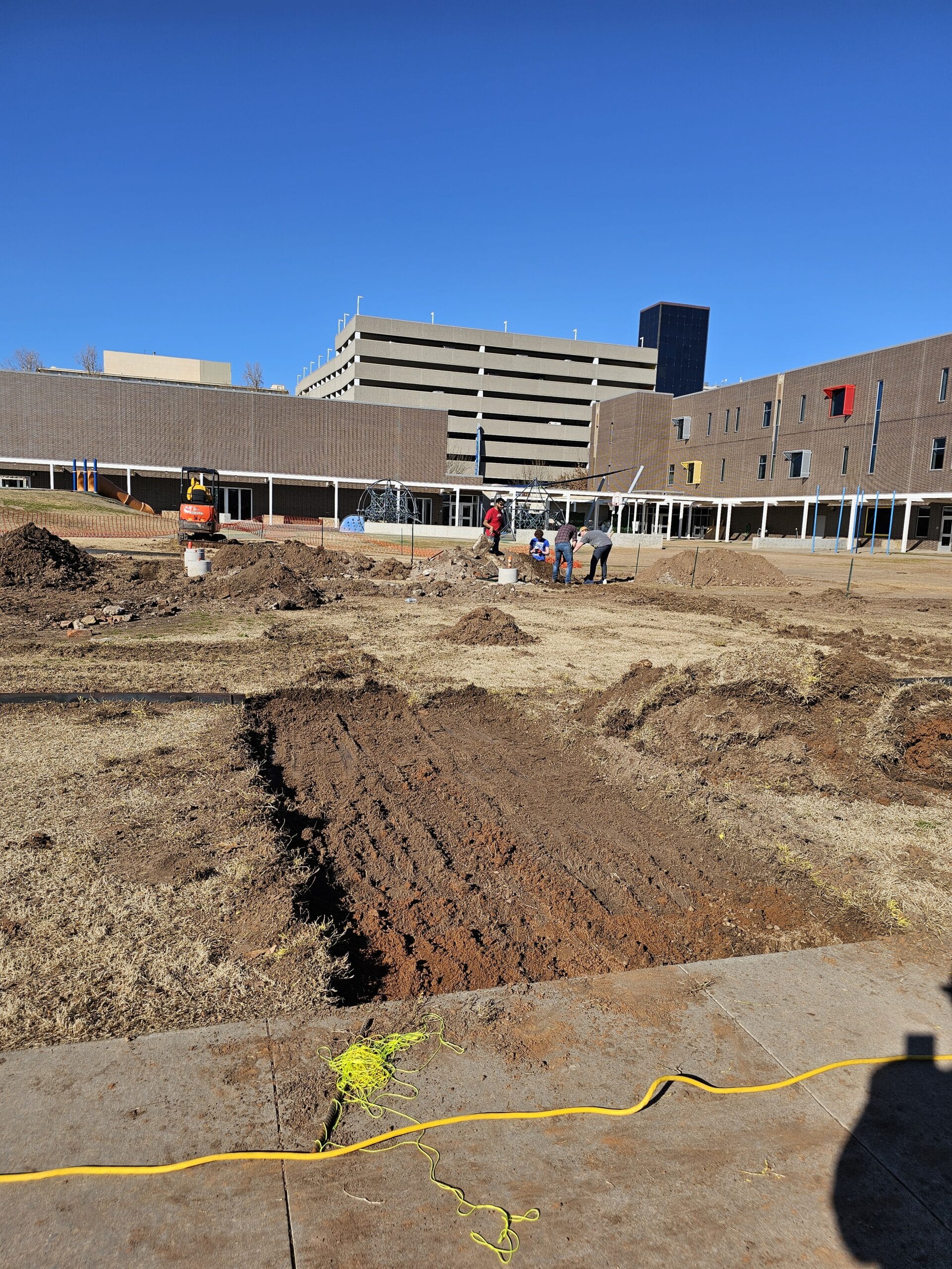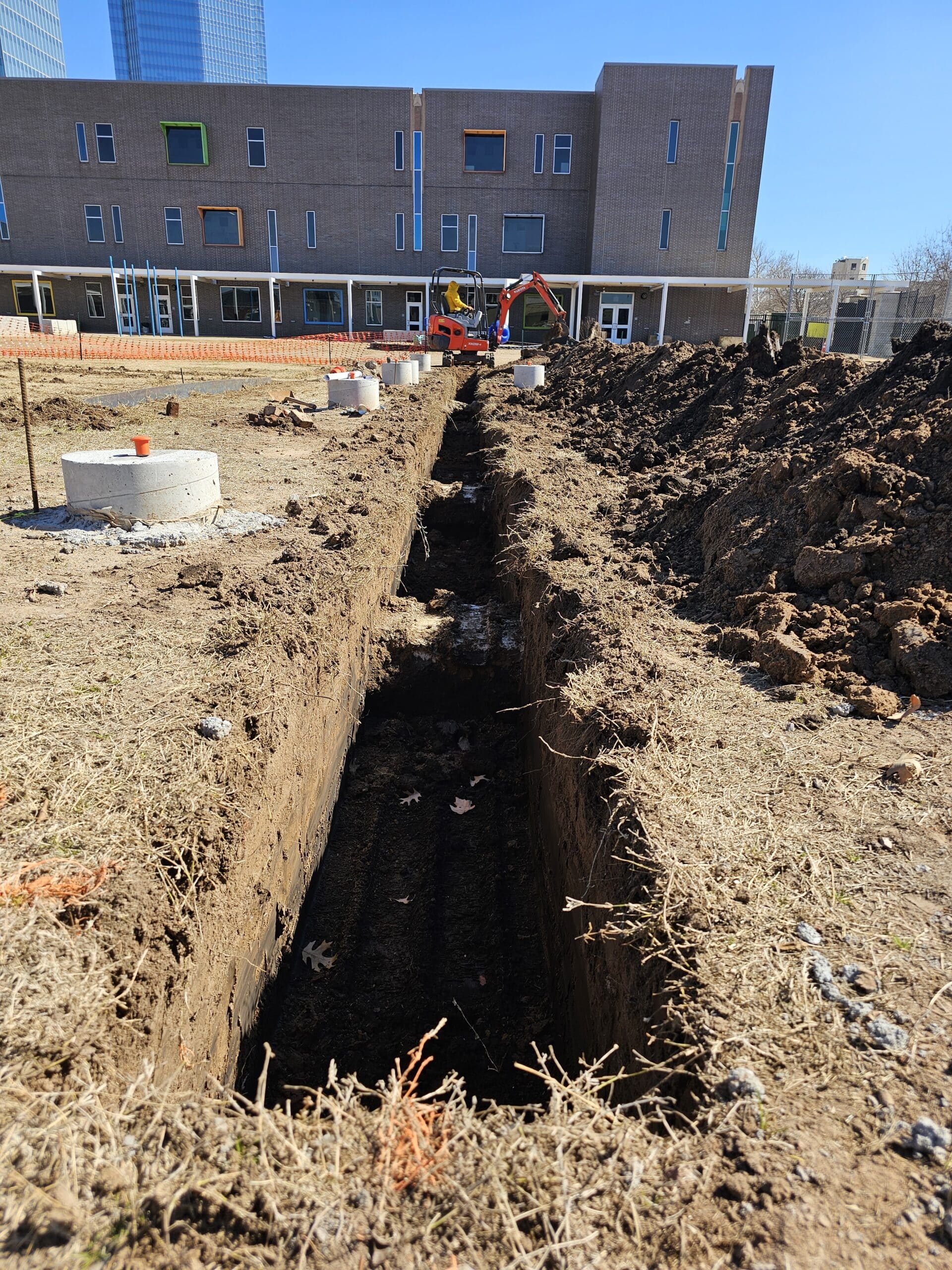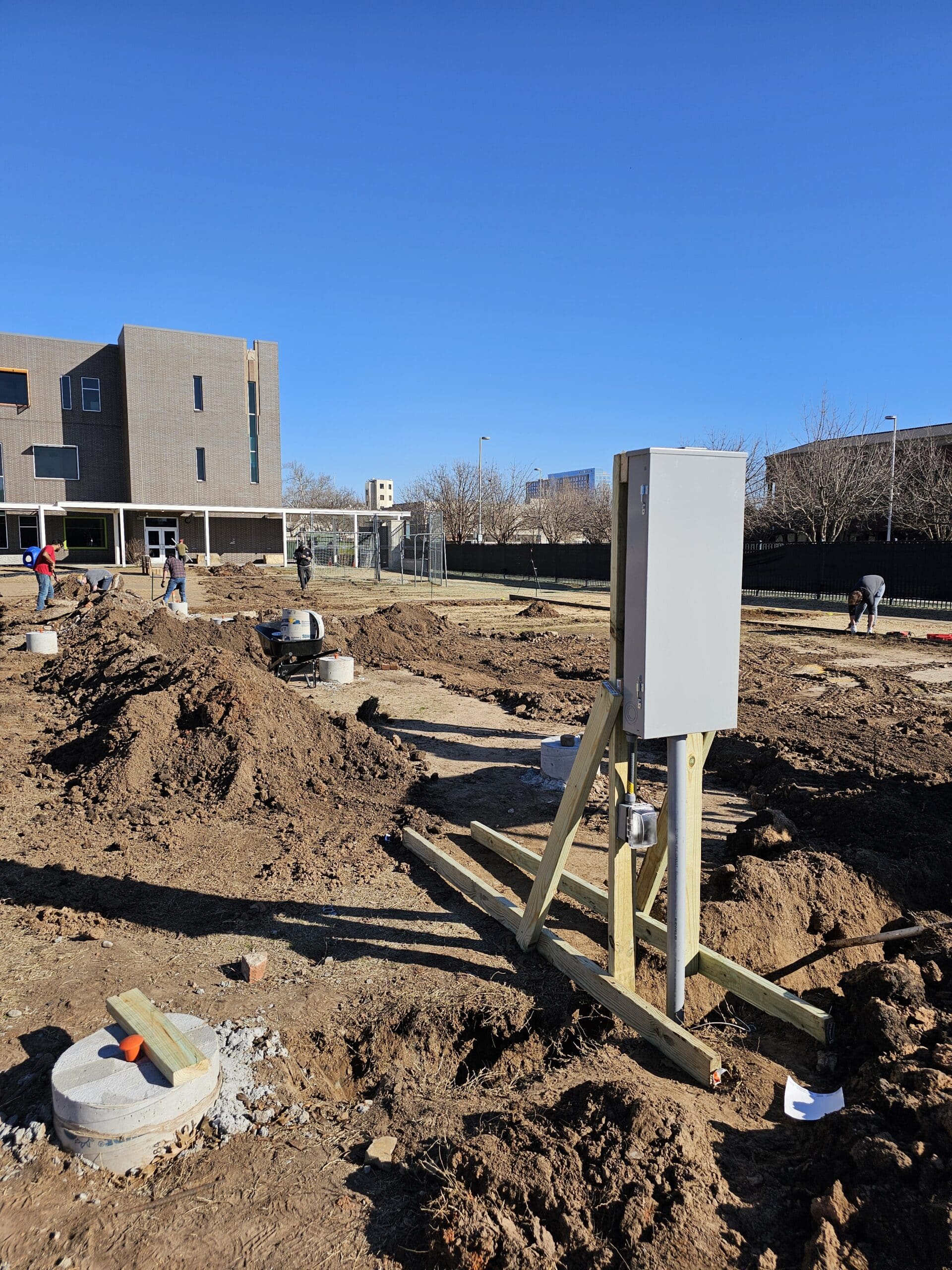 Today, we advanced our landscape efforts, focusing on the careful installation of 1/8″ steel landscape edging at John Rex Charter School. Moreover, the orchestration of utility infrastructure, including a 100amp electric service and water line, installed by professionals lent additional layers of coordination, and learning opportunities.