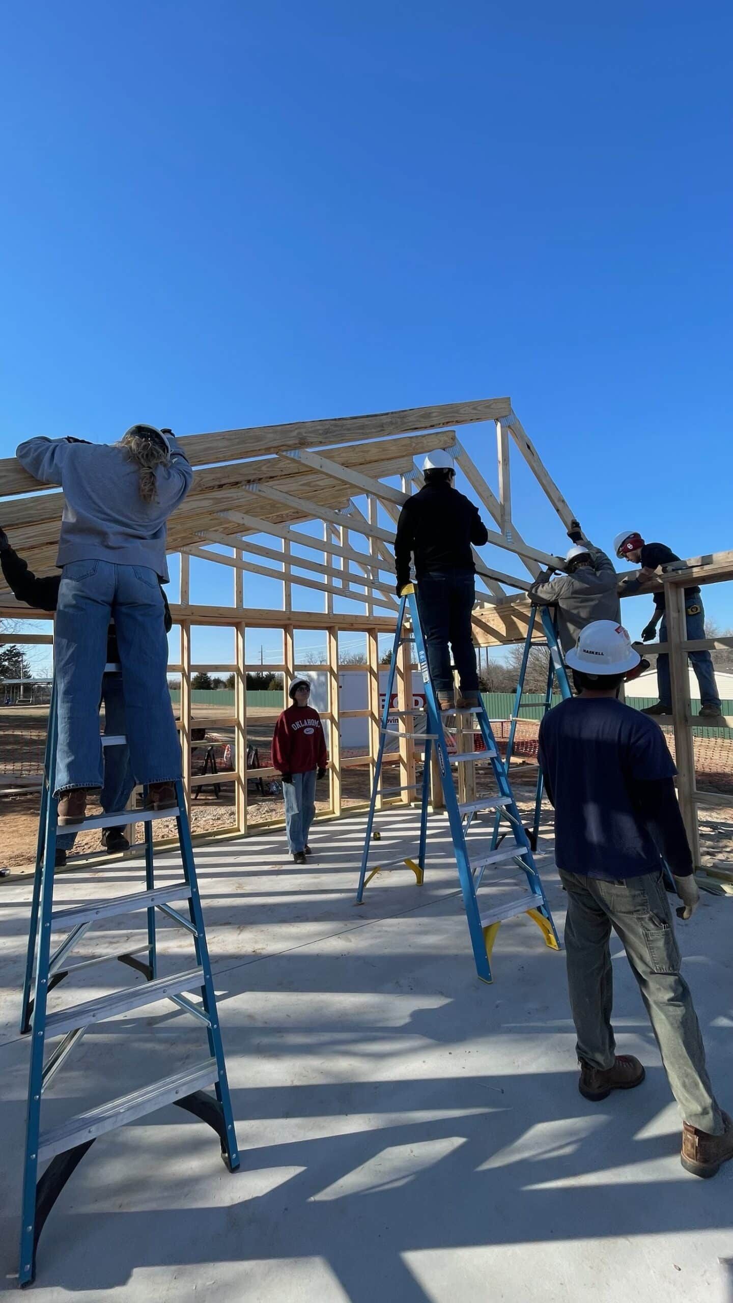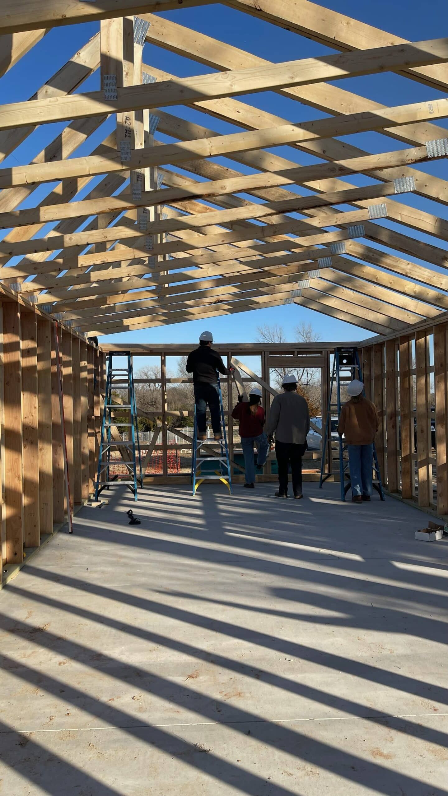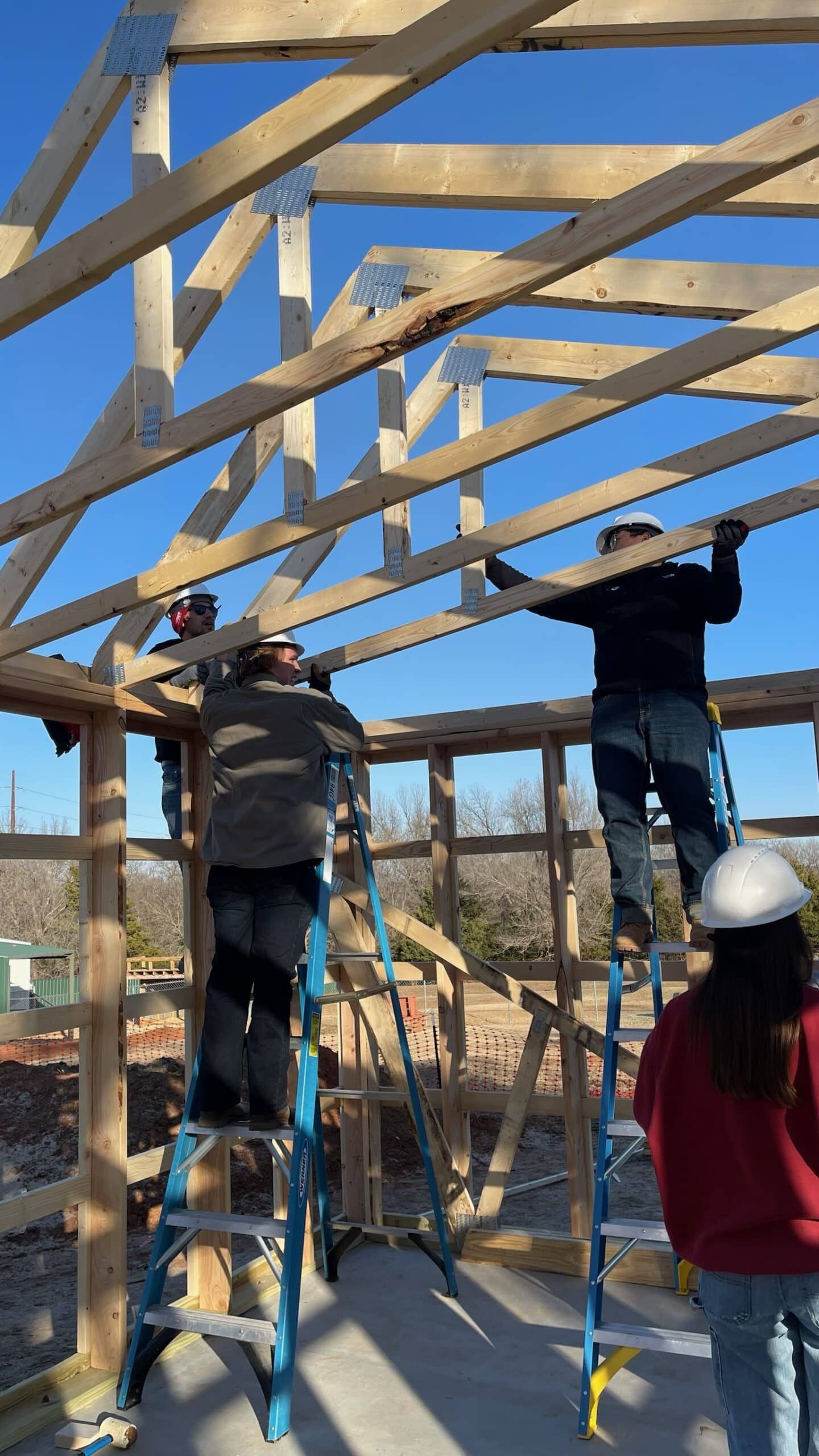 The truss system consists of 19 trusses spanning 18 bays, carefully positioned to ensure structural integrity and precision. With teamwork and skill, the students are bringing the next phase of the build to life.
