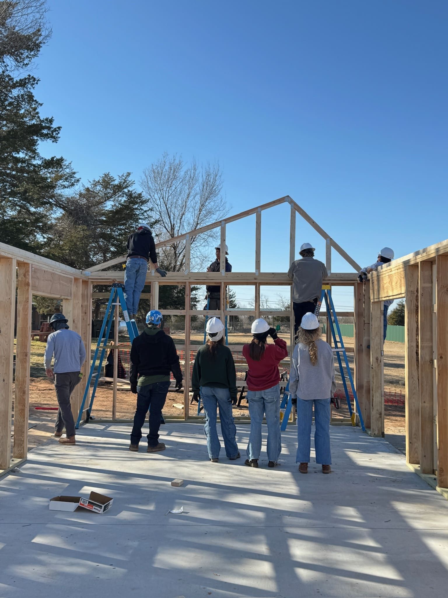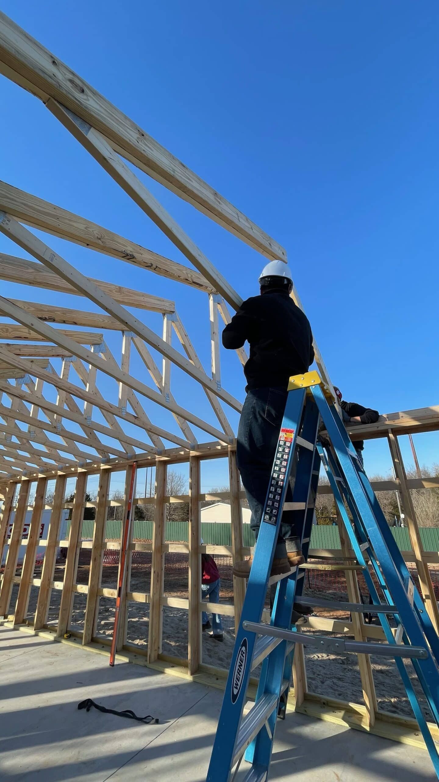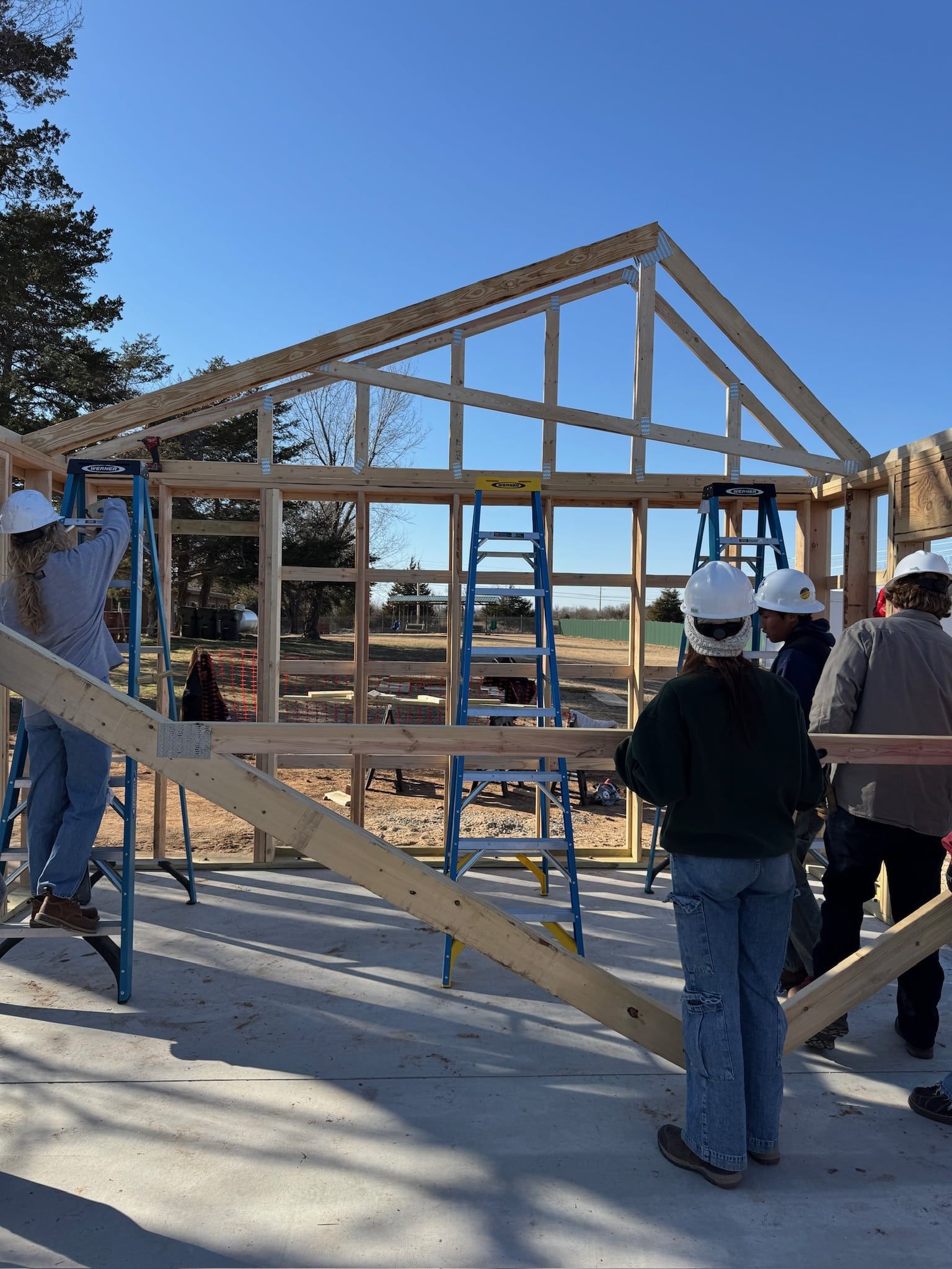 The truss system consists of 19 trusses spanning 18 bays, carefully positioned to ensure structural integrity and precision. With teamwork and skill, the students are bringing the next phase of the build to life.