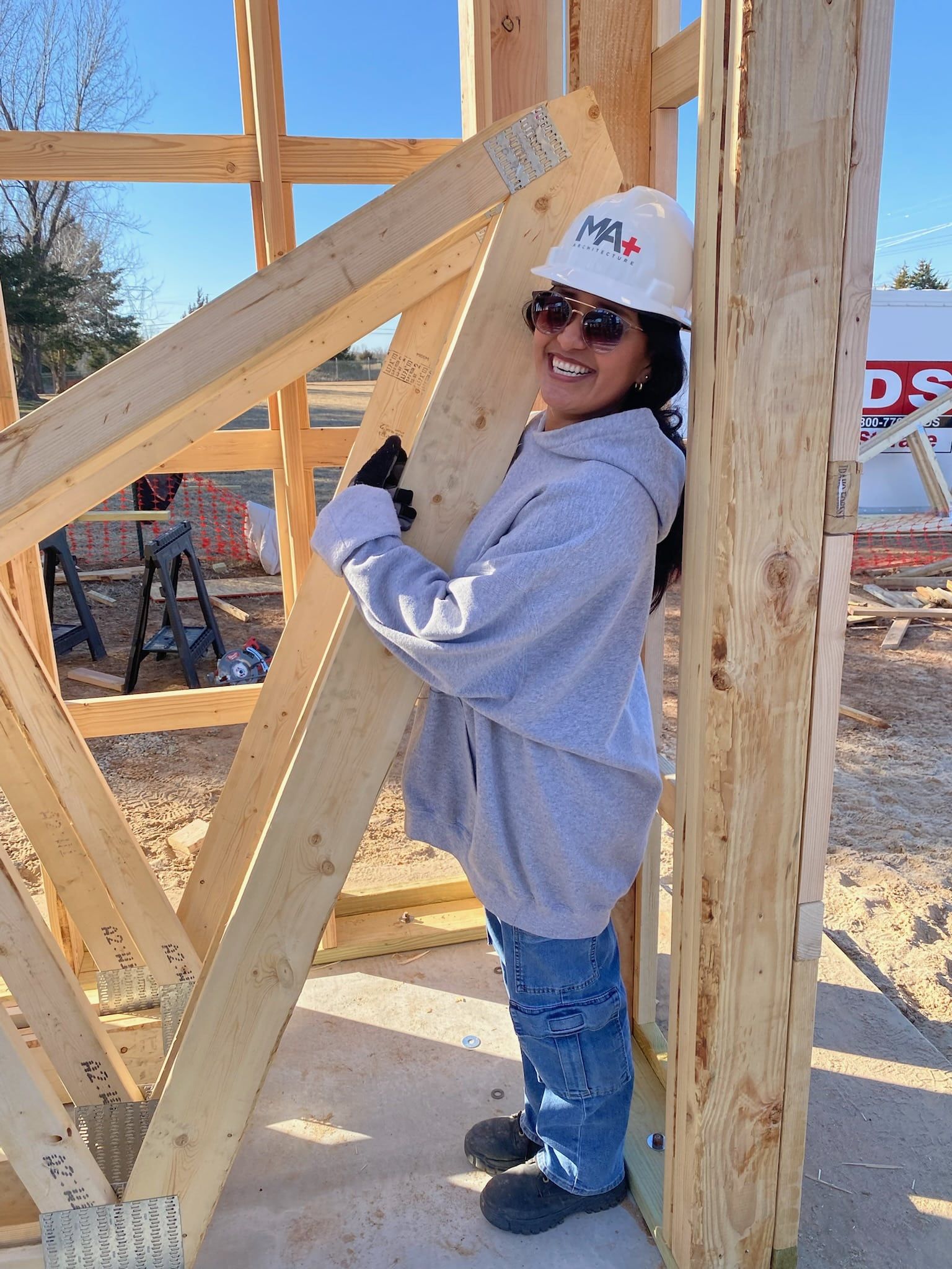 Design+Build students are hard at work receiving and installing trusses on-site, continuing the structure from the vertical framework. With teamwork and skill, the students have gathered all their strength to bring the next phase of the design to life.