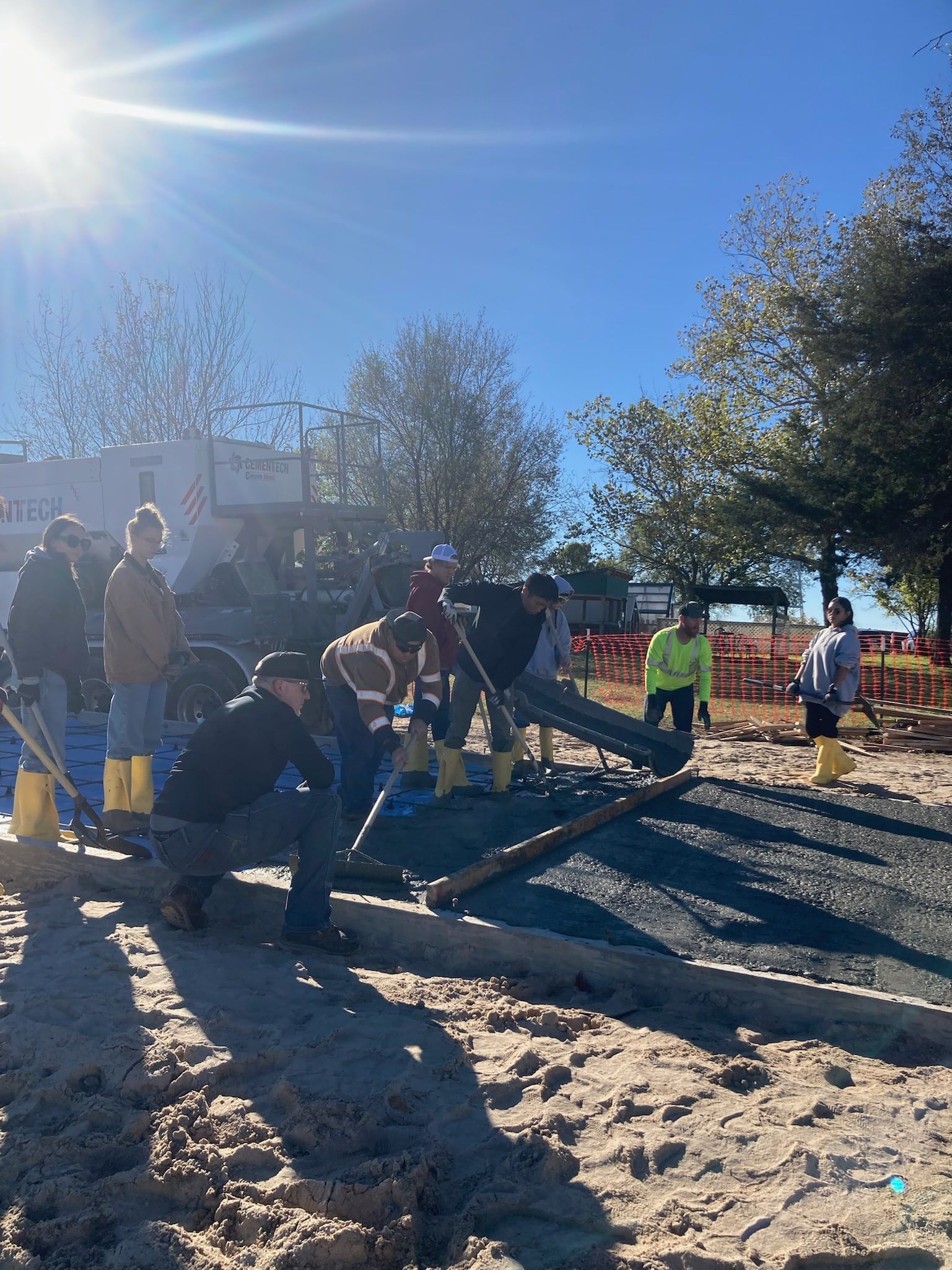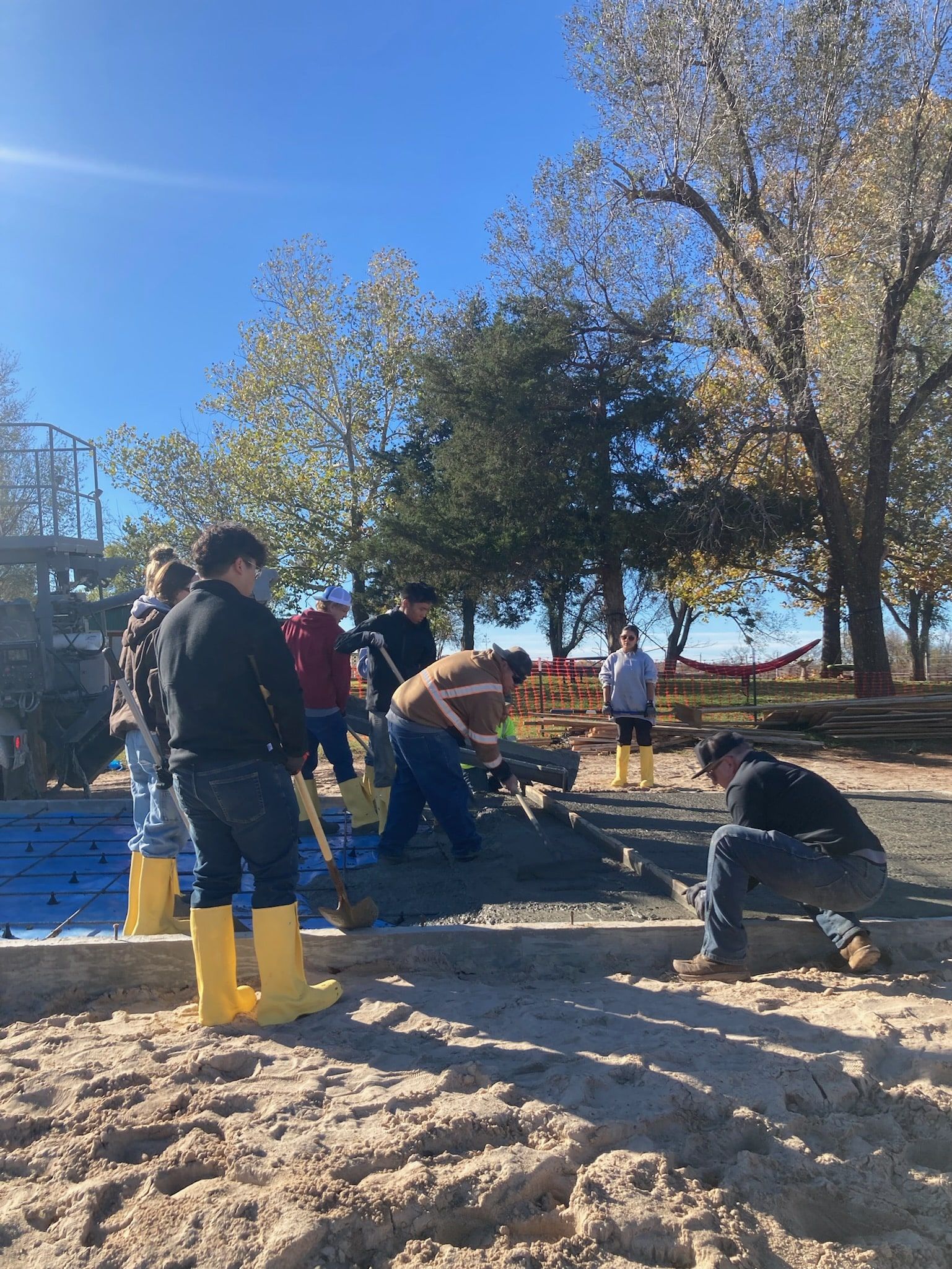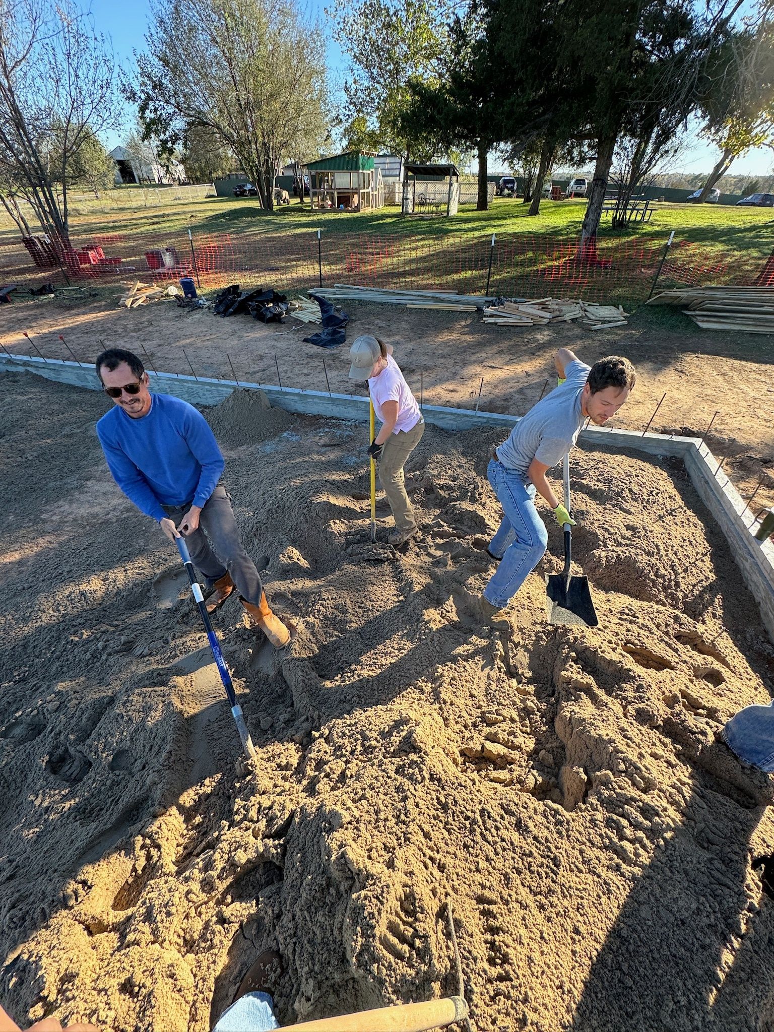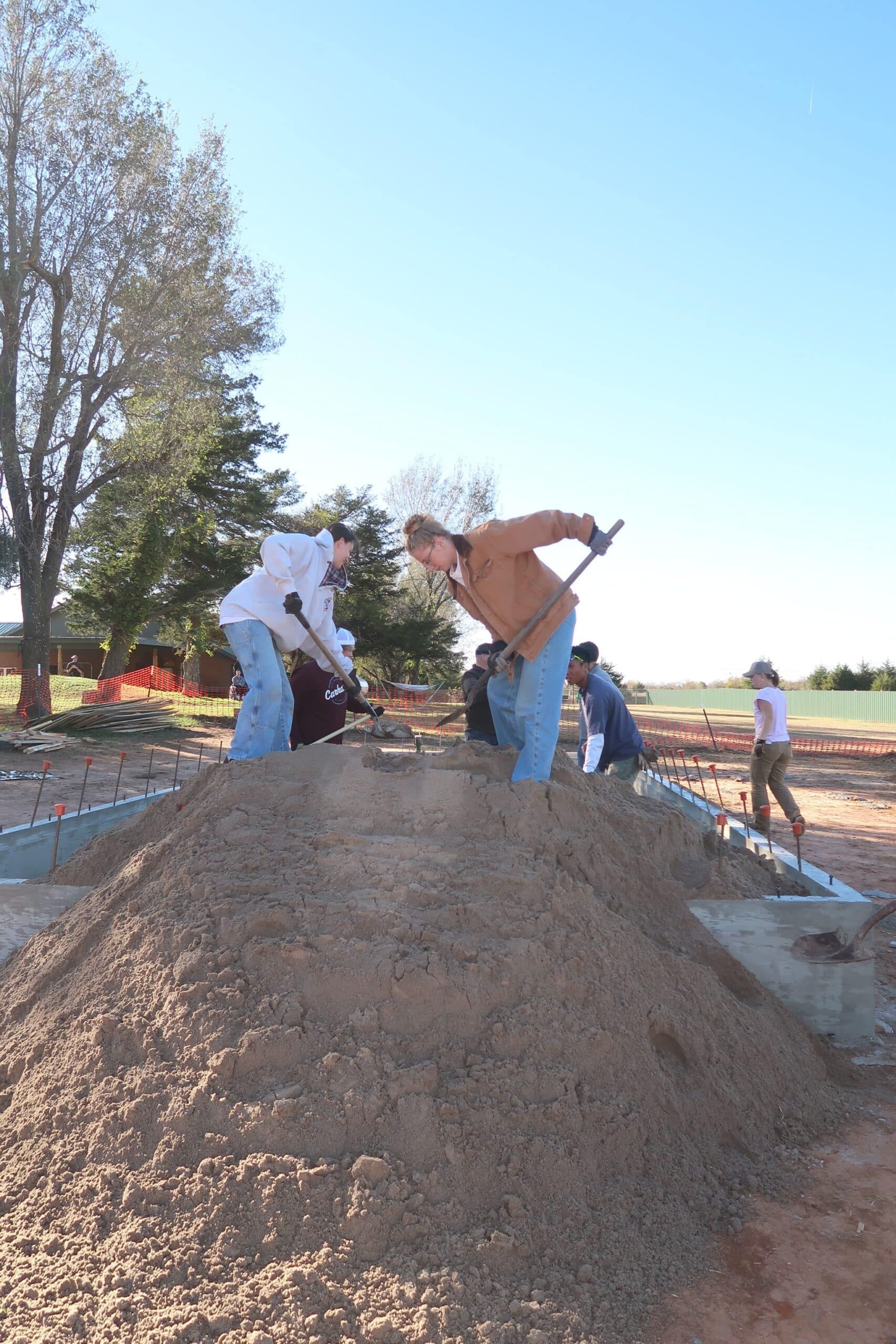 A crucial aspect of building a strong foundation involves the use of sand. A truck delivered approximately four tons of sand to the site, and students applied their strength and patience to shovel and level the material, ensuring a solid and stable foundation was created.