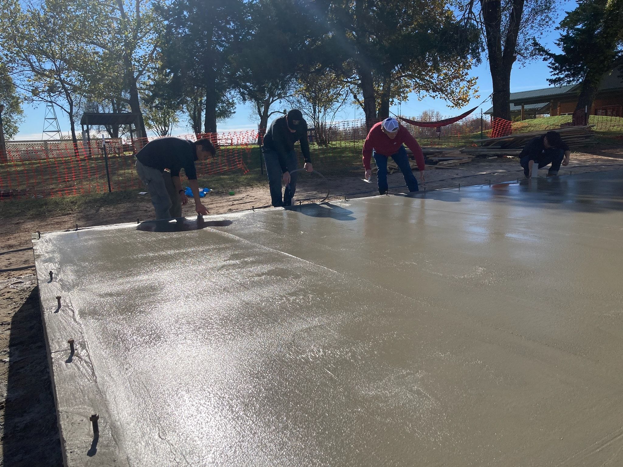 The final step of the foundation involves pouring a layer of concrete, then smoothing and leveling it to create a solid, even surface. Once set, the concrete is polished, ensuring the foundation is strong and ready for the next phase of construction.