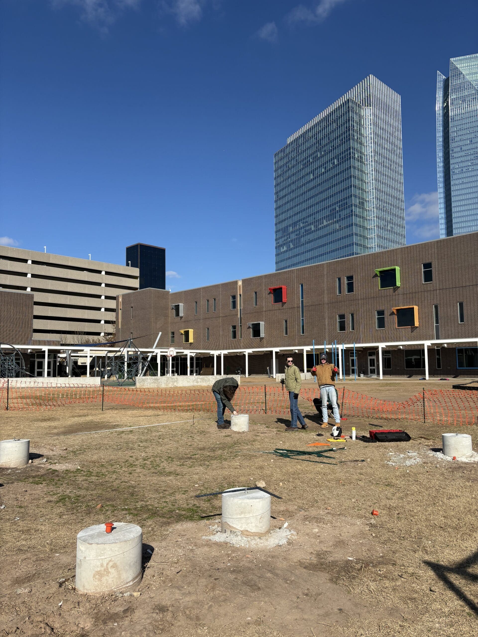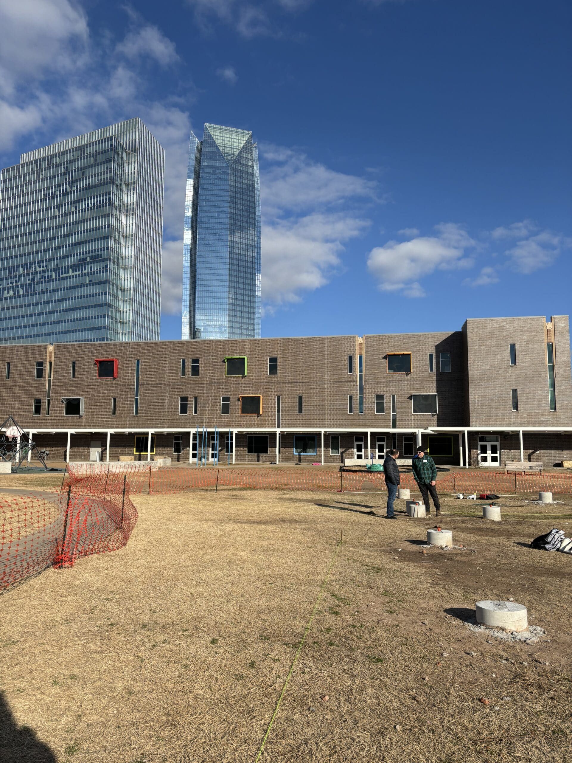 The importance of creating harmony between the built environment and the ground it interacts with is critically important. Today, we took the first steps as we readied our site at John Rex Charter School in Oklahoma City, for steel edging and gravel base installation next week.