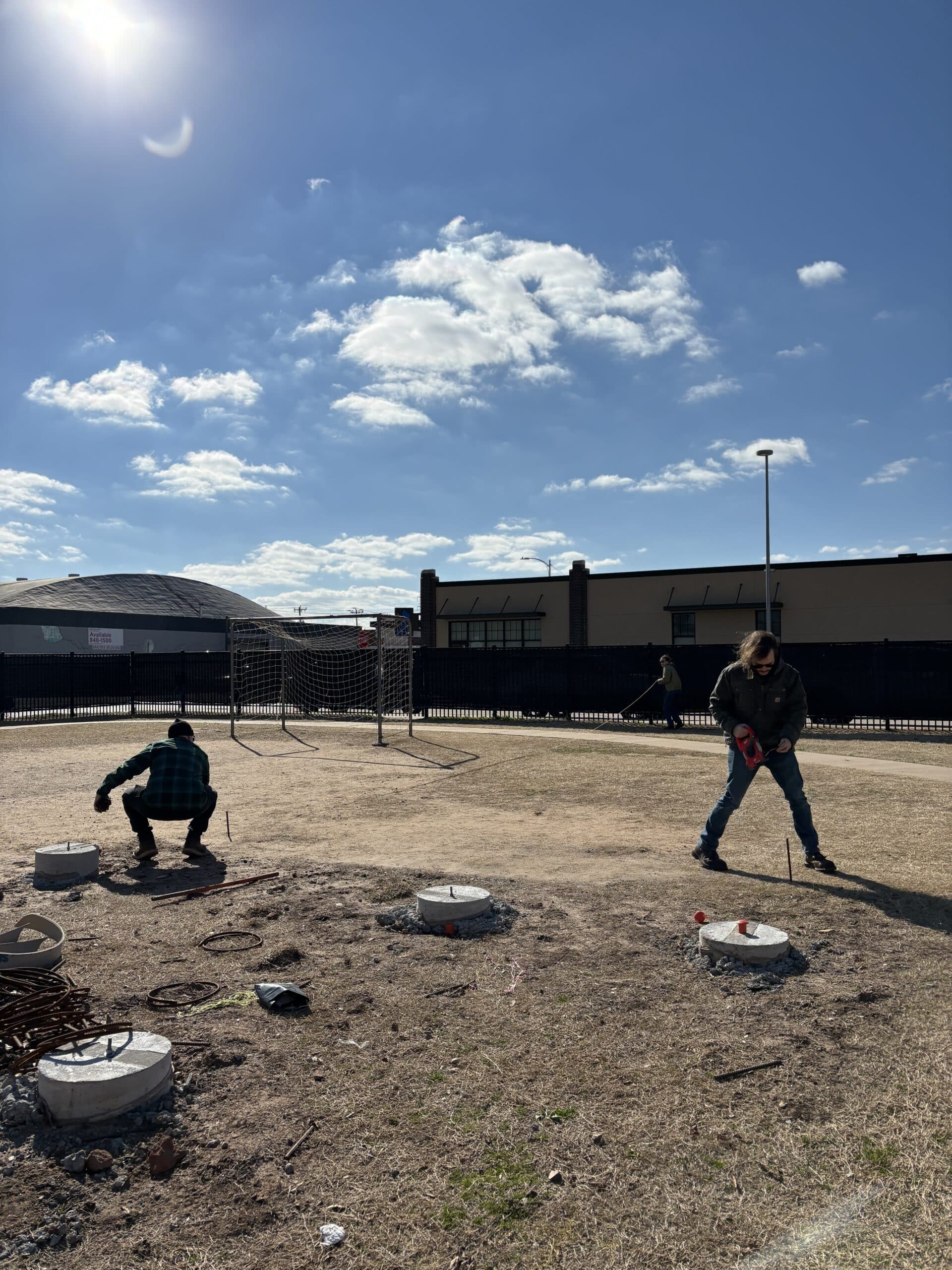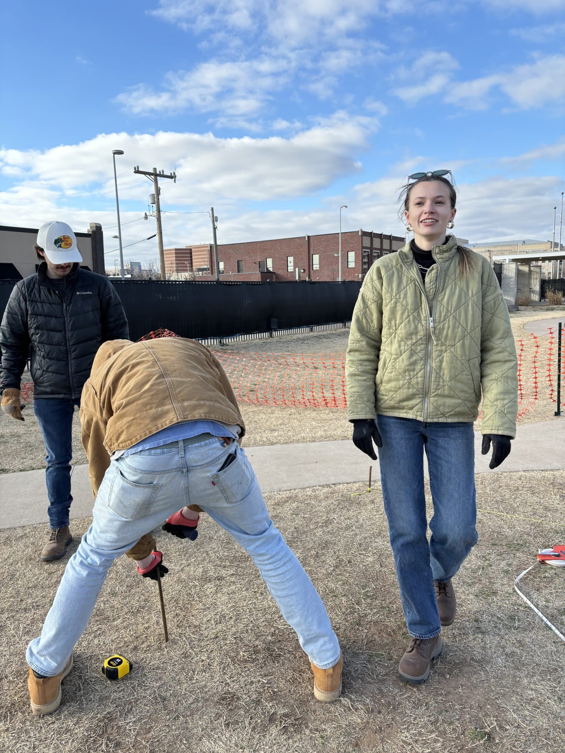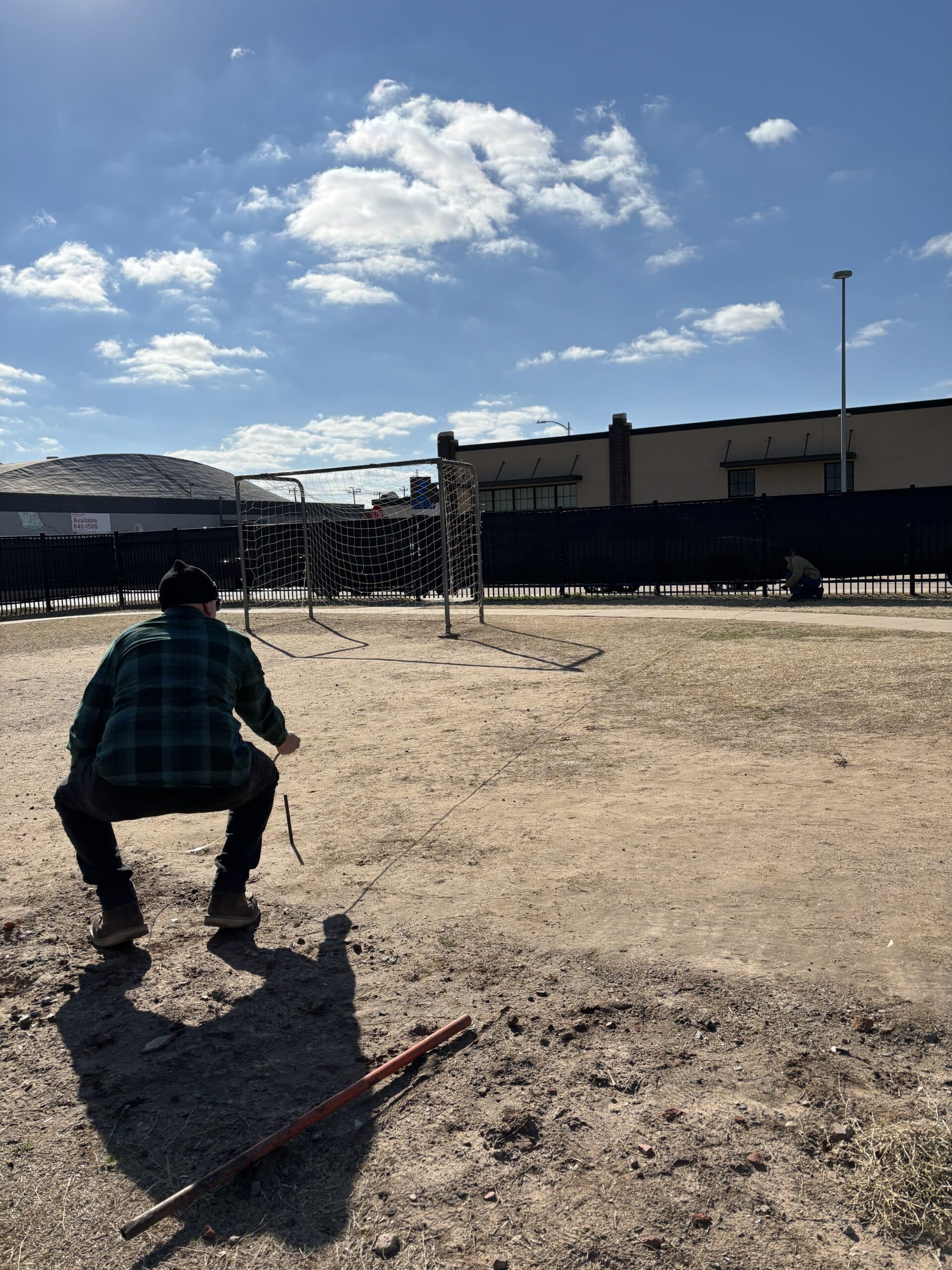 It was a cold, windy day out on the site, but we all had good energy and got the job done! It’s just stakes and lines for now, but they’re the foundation for something big. With each stake we hammered in and each line we stretched out, we could start to see the potential of the space coming into focus.