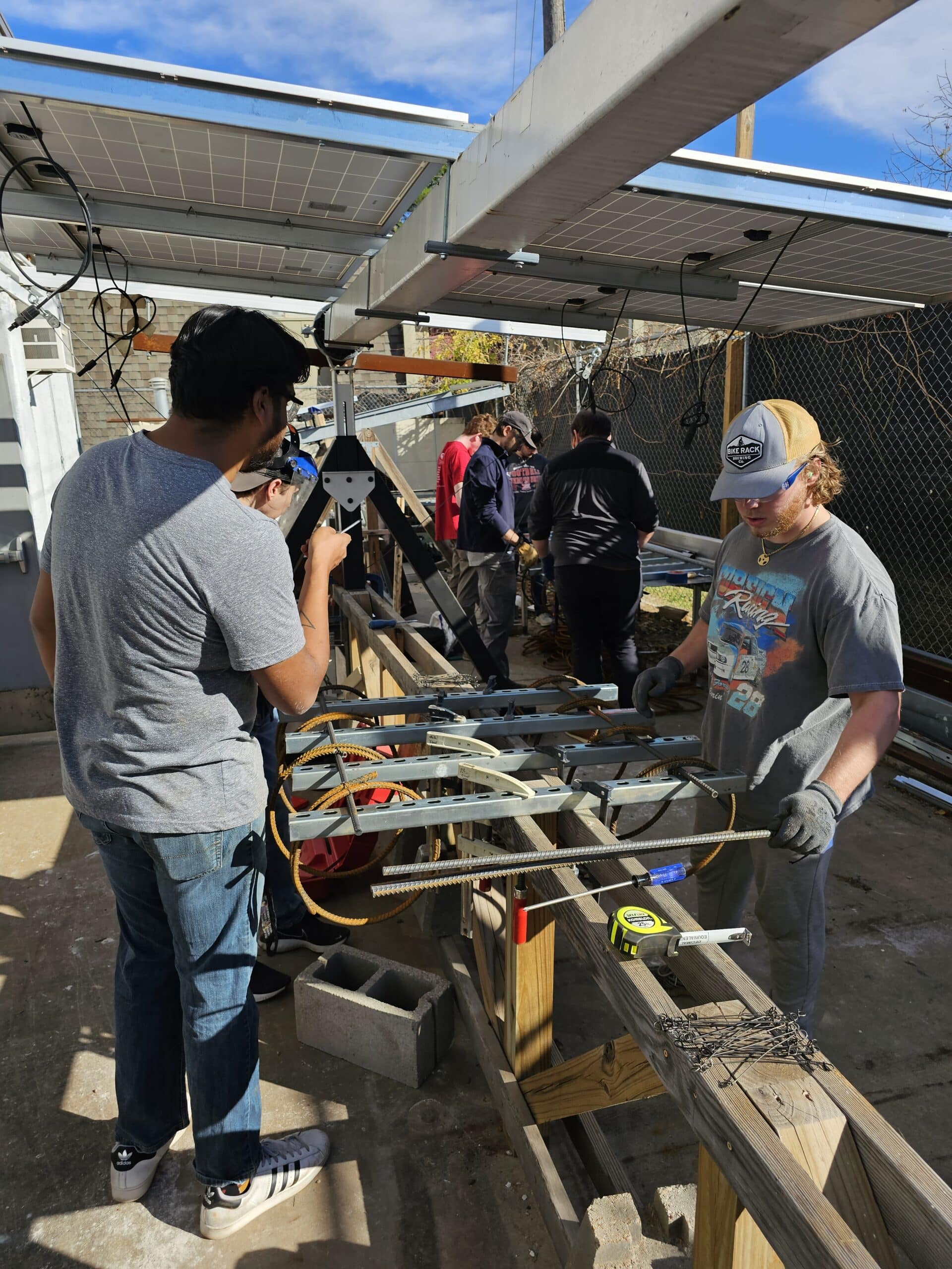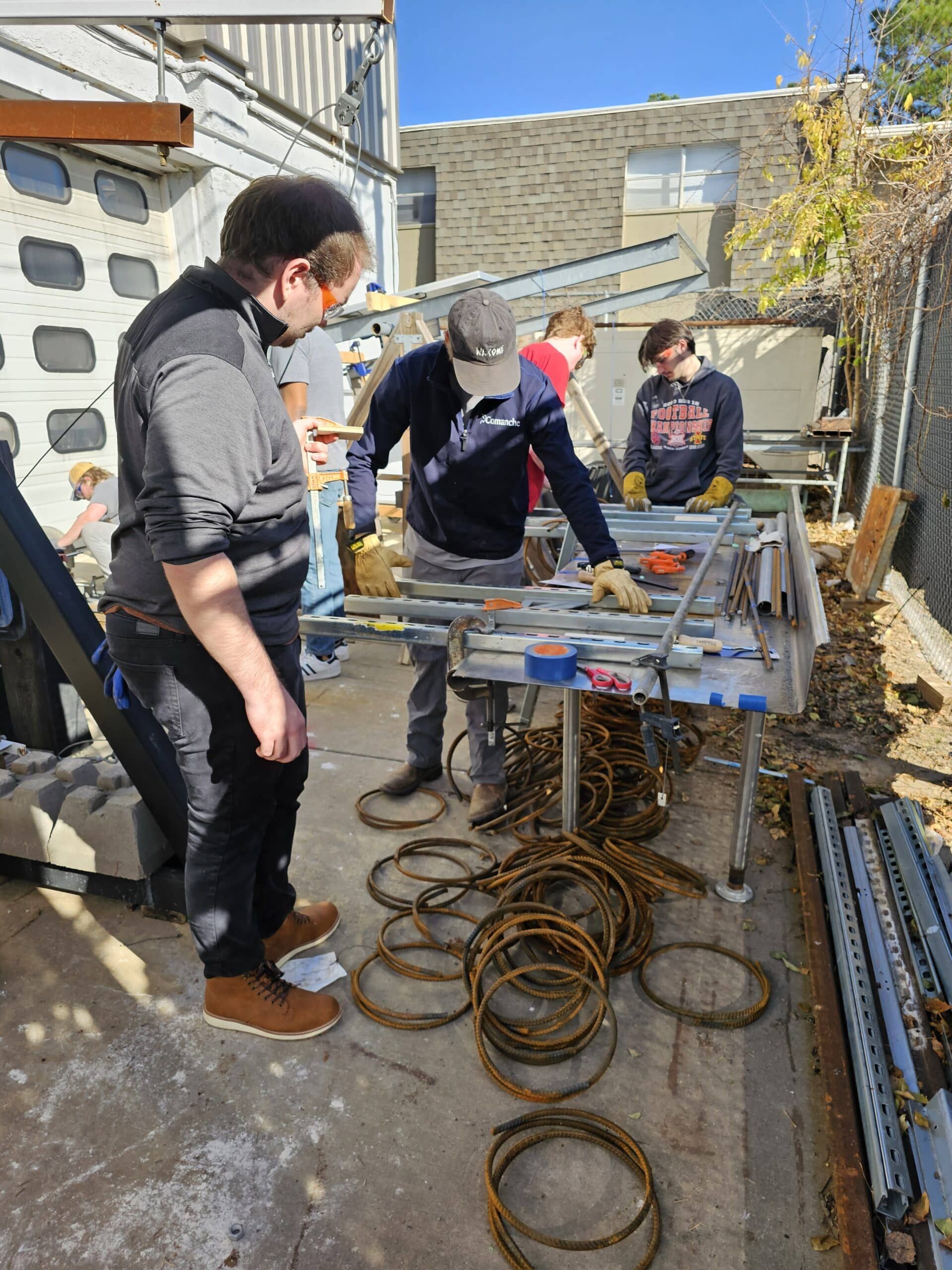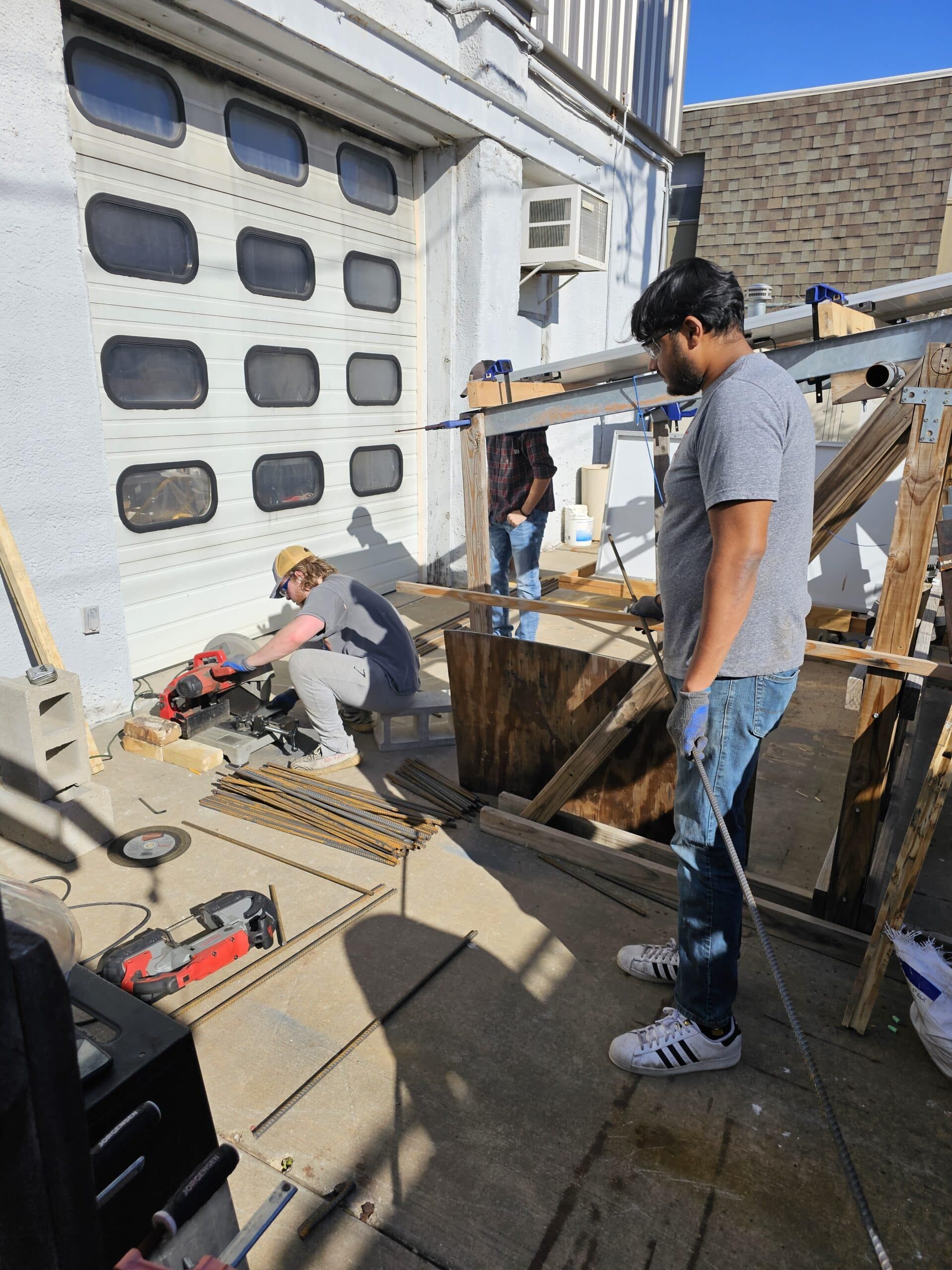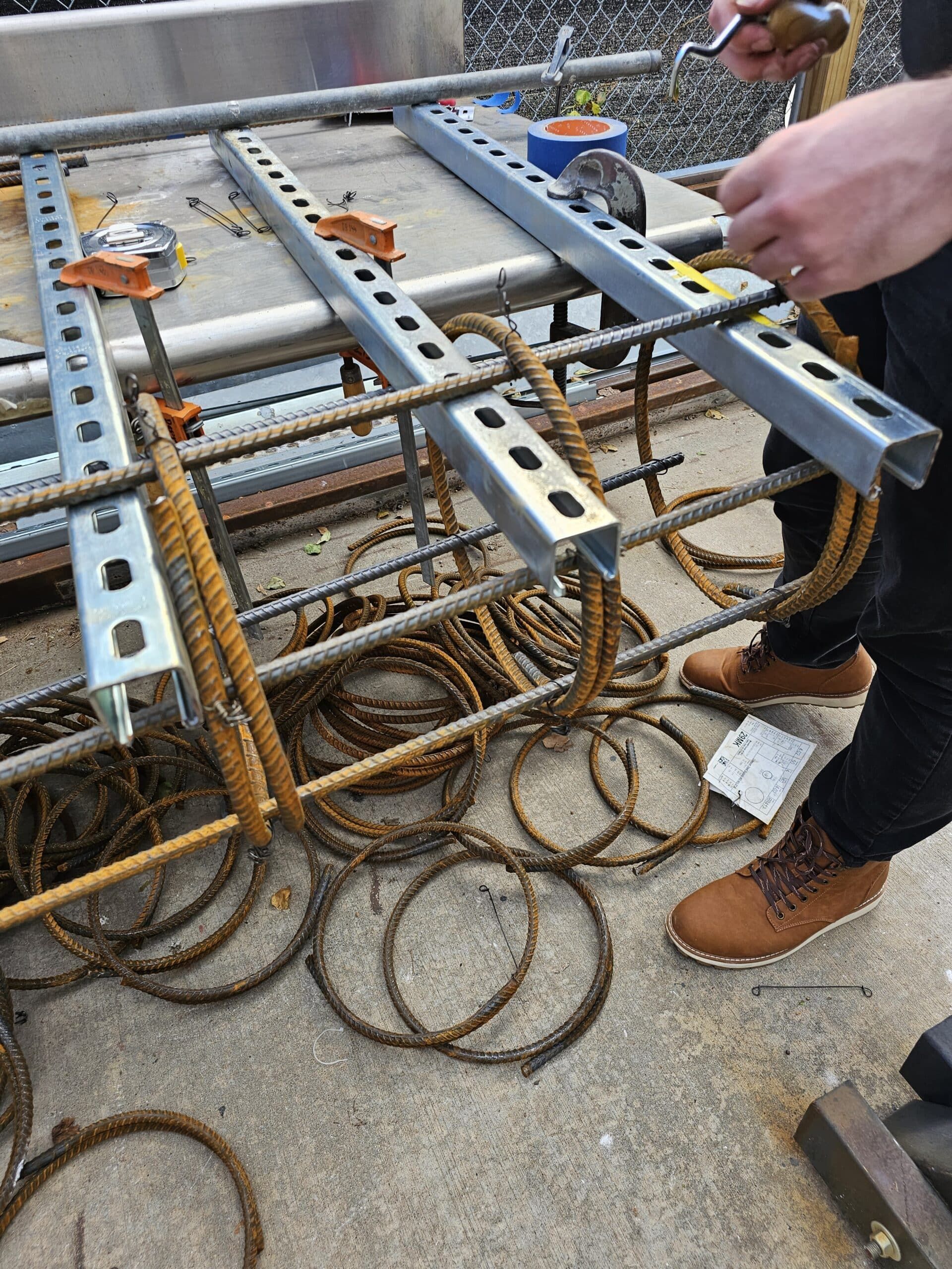 Adding an extra layer of structural support, students fabricate rebar cages with precision. They meticulously weave together steel bars to reinforce the concrete, enhancing its tensile strength and durability.
