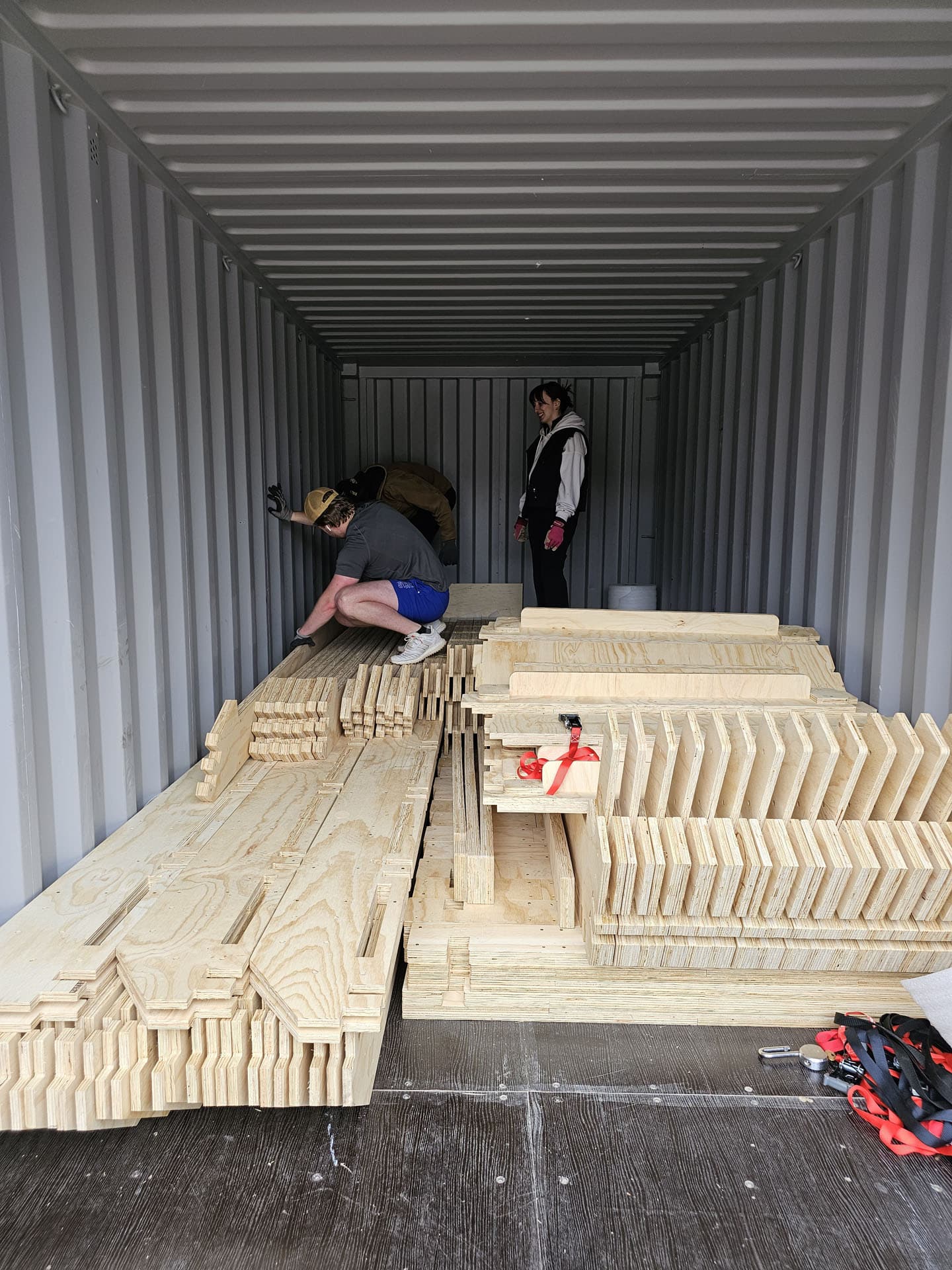 As the components come together, our design+build students have orchestrated the packing of a shipping container with strict precision. By maximizing space utilization and employing efficient packing techniques, every component is securely nested within the container, ready for safe transport to its final destination at John Rex Charter School. This process exemplifies the power of teamwork and interdisciplinary collaboration in achieving our collective goals.